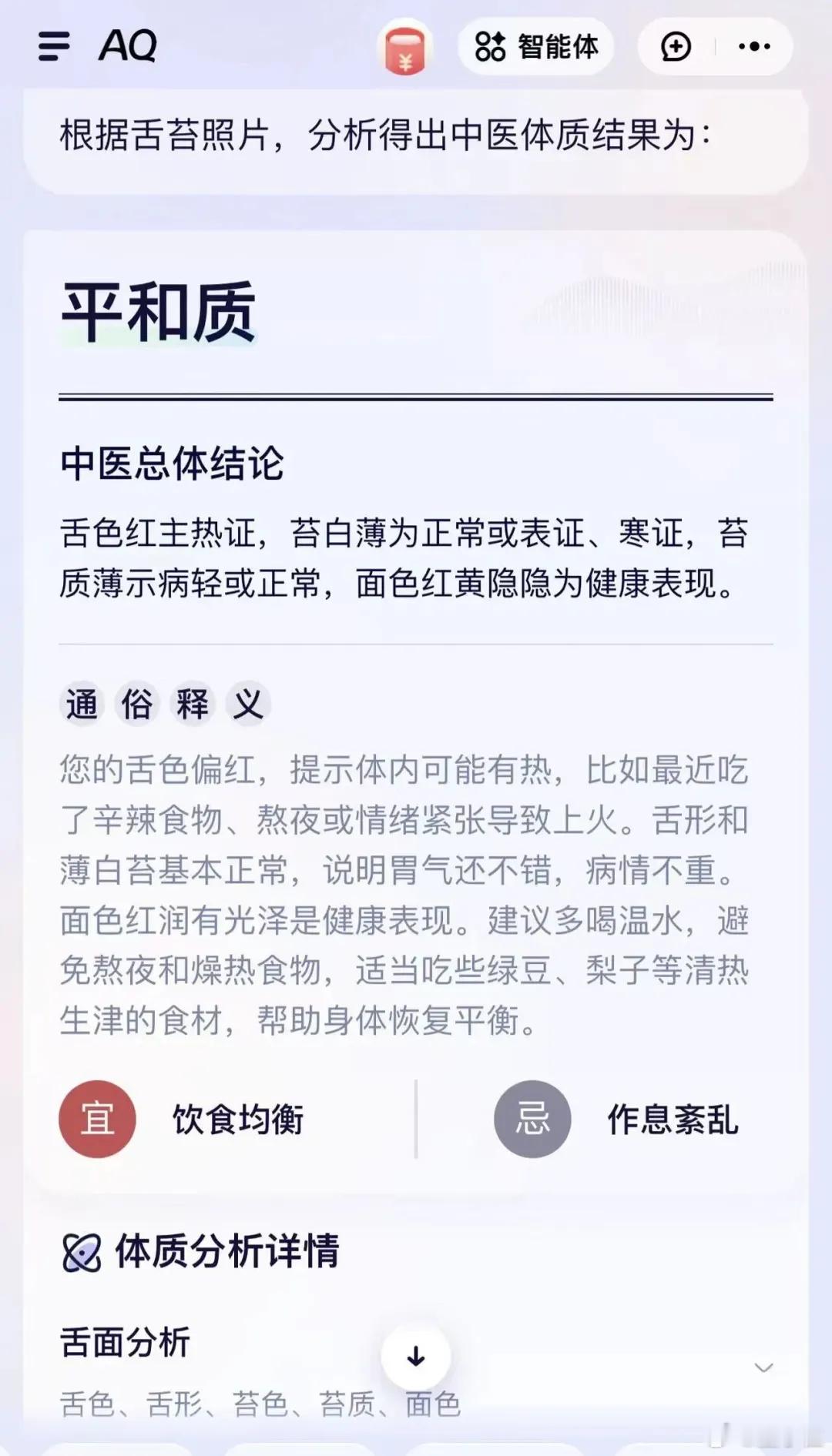 还能化身老中医还能看舌象,什么气虚、阳盛、寒热平衡,整得挺头头是道:【图4】