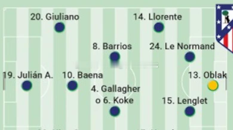 中前场方面,冈萨雷斯上一场比赛负伤下场,但伤势不重,本场有望继续坐镇左路。西蒙尼预计将重回右路。而阿尔瓦雷斯的搭档将会从格里兹曼与巴埃纳中做出选择。