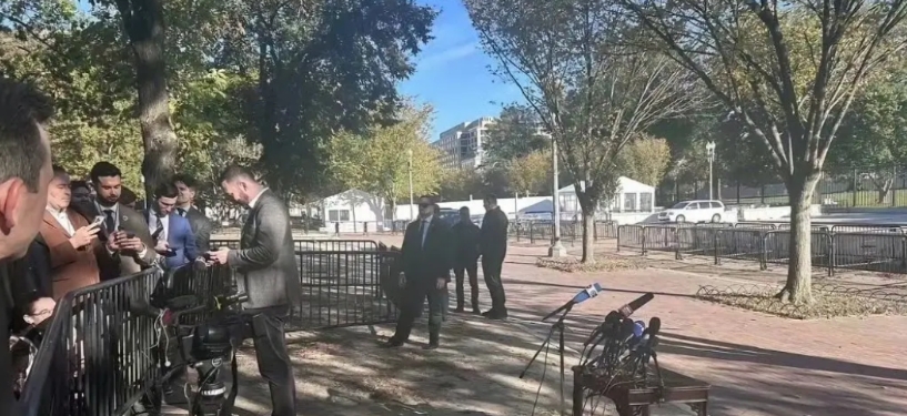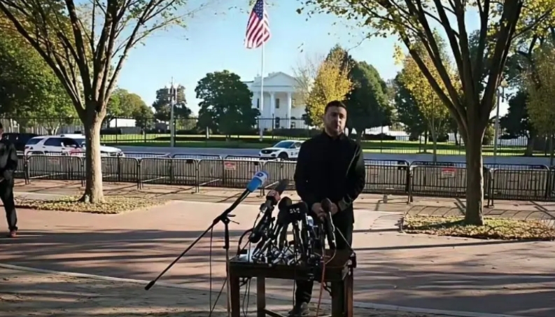 然后安排在白宫外道路边,用一个小桌子架起一堆话筒,举行了这次新闻记者会。