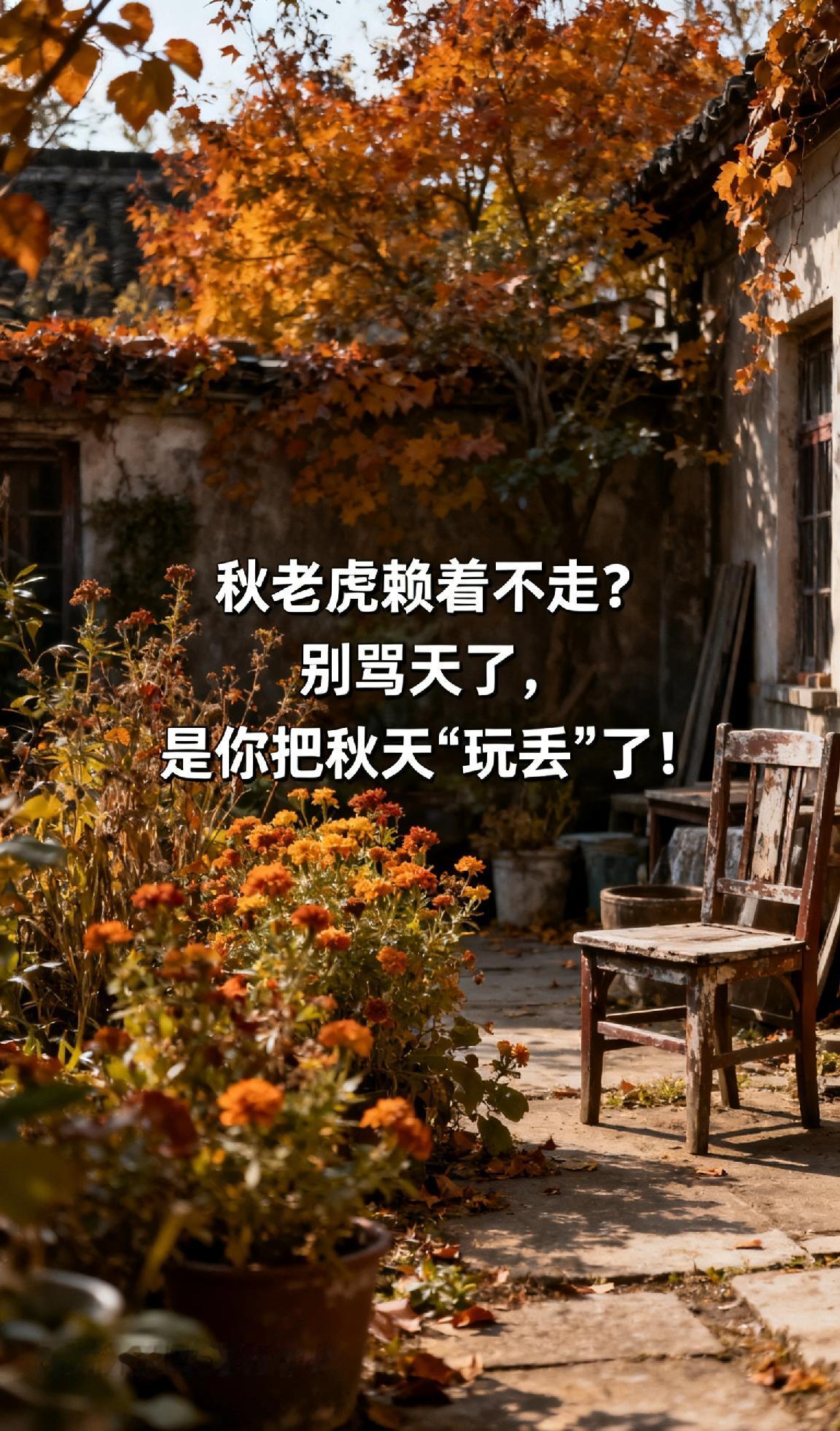 秋老虎赖着不走?别骂天了,是你把秋天“玩丢”了! 立秋都过去小半月了,大街上照样短袖晃悠,空调还在24小时连轴转,连树上的蝉都叫得没底气:“说好的秋高气爽呢?这是要直接蹦冬天?” 先别怨天尤人,真相可能扎得你直咧嘴——秋天没跑,是咱们自己把感受季节的“雷达”给关了。 第一锅:快节奏把“季节感知”给挤没了 早高峰地铁里,你盯着手机刷通勤路线,哪顾得上看窗外天是蓝是灰;晚上加班到十点,出了写字楼只剩路灯,哪分得清月亮圆不圆。 KPI追着你跑,房贷压得你喘,孩子成绩单让你揪着心,满脑子都是“下一个任务”,谁还会留意楼下的桂花开没开,小区里的银杏黄没黄? 古人还能对着秋夜吟“银烛秋光冷画屏”,咱们倒好,连“秋天来了”的信号都接收不到,不是季节变懒了,是咱们的心被琐事塞满了。 第二锅:数字化把“真实体感”给整虚了 天气预报喊“今天降温5度”,你在恒温26度的写字楼里,连件薄外套都用不上;手机推送“某某地枫叶红了”,你划着屏幕点赞,连窗外的风都没摸过。 空调把酷暑严寒全挡在门外,外卖让“贴秋膘”变成了“点份红烧肉”,就连“秋天的第一杯奶茶”,也成了朋友圈的打卡任务,哪还有半点季节的仪式感? 咱们活在屏幕里的“虚拟季节”里,真实的秋风怎么吹、秋叶怎么落,早就没了感觉,这不就是把秋天“架空”了嘛! 第三锅:想找秋天?得自己“主动出击” 别光抱怨没秋天,其实早有人行动起来了。有人在阳台种上小青菜,看着叶子冒芽就知道秋天到了;有人周末往郊外跑,踩踩落叶听听虫鸣,瞬间找回季节感;还有人每天提前两站下地铁,走路回家,顺便看看路边的树换没换“衣裳”。 这些小事看着不起眼,却是把秋天“拽”回来的好办法。秋天从来不是只看气温,它是丰收的踏实感,是慢下来的从容劲,更是“别只顾着跑,也看看身边”的提醒。 就像木心说的:“从前的日色变得慢,车、马、邮件都慢”,现在咱们也能慢一点,别让秋天在忙碌里“隐身”。 一句话收尾:秋天没躲,是你走得太急,没看见它 明天试试关掉空调,开开窗子,让风摸一摸脸;下班绕个路,去公园踩踩落叶,听听“沙沙”的响;路过烤红薯摊,买一个揣手里,闻闻那股子甜香——你看,秋天这不就回来了嘛! 世界从来没藏起美好,是咱们习惯了往前冲,忘了停下来看看。这个秋天,别再让它“溜走”啦! 你要是也有过“突然撞见秋天”的小事,评论区说说,让大家也沾沾季节的味儿!