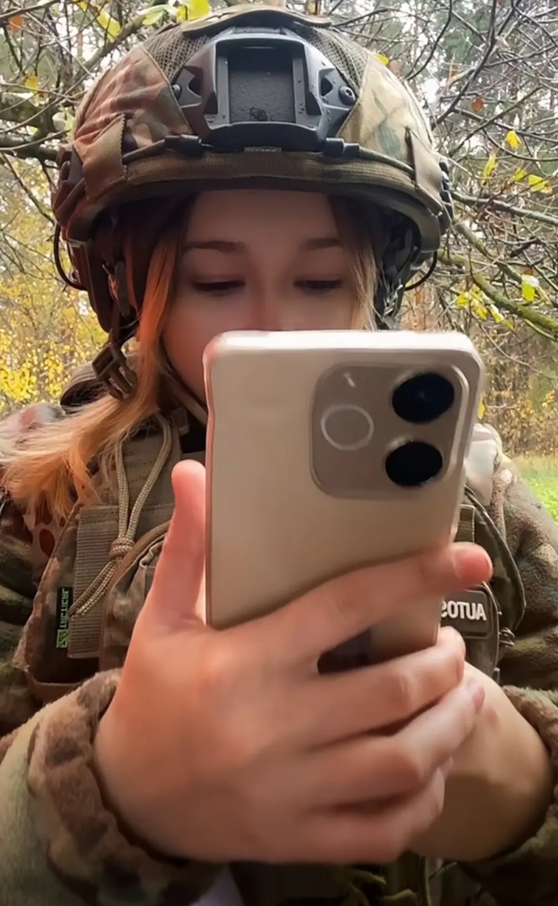 刚刚刷到了一个乌克兰女兵的视频,她拿着两个手机,在野外开直播!