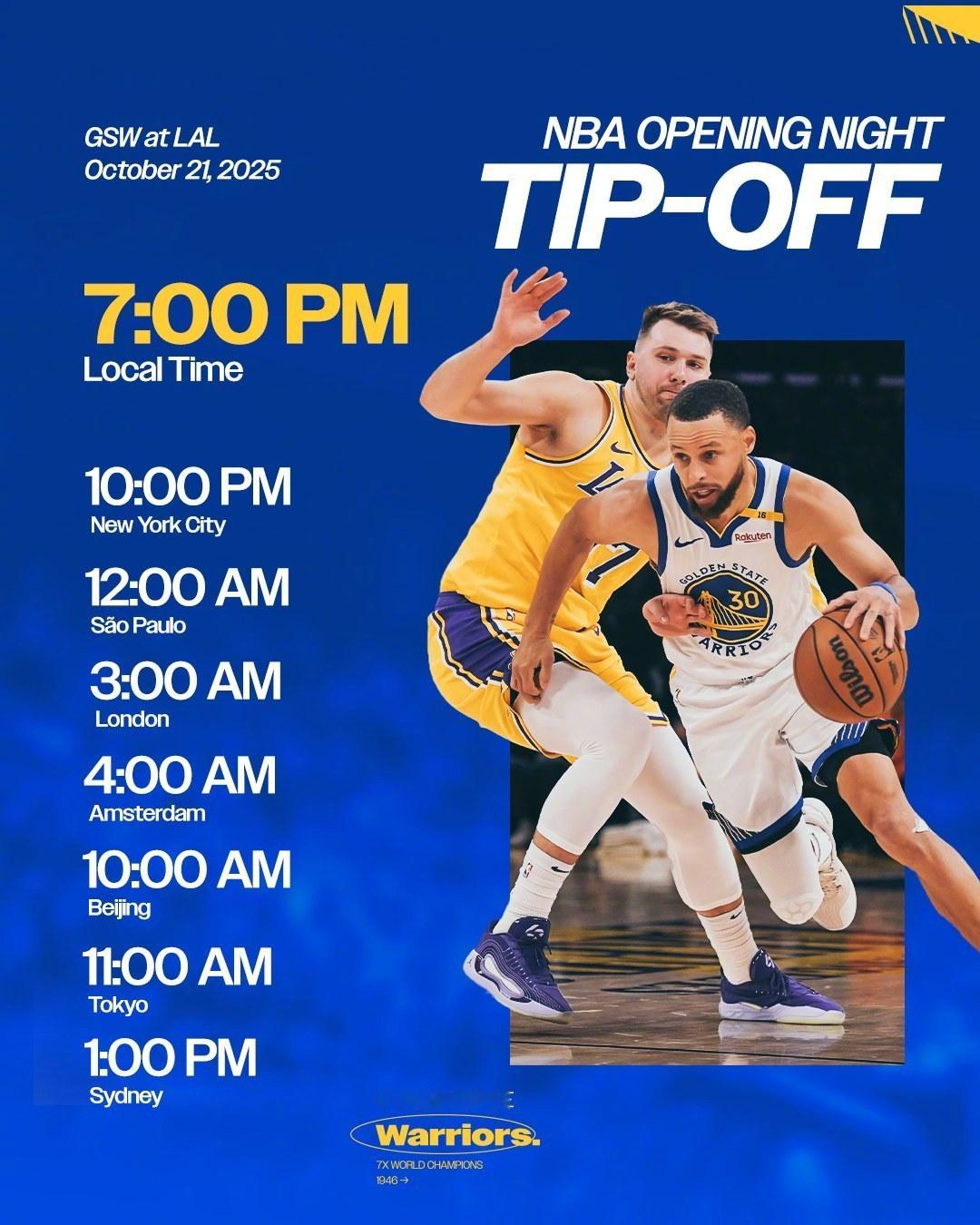勇士球迷们,新赛季开始了,明天上午十点揭幕战第二场:勇士客场挑战洛杉矶湖人!请为