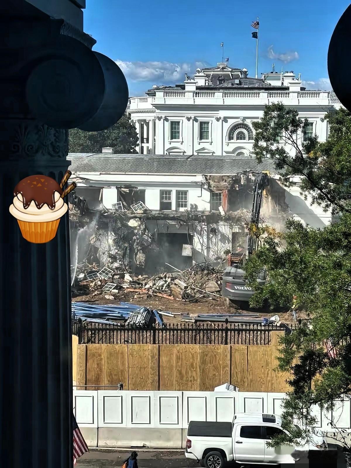 特朗普下令把白宫东翼给拆了,准备修建更大的宴会厅。但是拆除白宫东翼外墙的时候,还是被很多人拍到了照片。这一幕太过于震撼,以至于有人认为这对美国不是好的信号。 特朗普当然有理由更新白宫设施。但是使用挖掘机如此粗暴地拆除白宫东翼建筑,还是大白天进行,确实让人感到震撼。 白宫东翼正在变成一堆废墟。工人们用高压水枪喷水降尘,但挡不住历史在崩塌。这座1902年建成的老建筑,经历过二战、见证过九位总统,现在只剩钢筋水泥的残骸。 记得去年参观白宫时,导游指着东翼的拱门说,这里迎接过无数外国元首。孩子们最喜欢站在那个红砖拱门下拍照。现在这些记忆都被铲车碾碎了。 新宴会厅要花2.5亿美元。特朗普说这是私人送的礼物。可谁会送这么贵的礼物?苹果、谷歌这些大公司都出了钱。他们图什么?这就像邻居突然要给你家装修,你不得想想他下一步要什么? 白宫不是特朗普的私人别墅。它属于每个美国人。我爷爷1963年作为越战老兵曾在东翼接受肯尼迪总统授勋。他说那天的阳光透过东翼的百叶窗,在地板上画出一道道金线。现在这些窗户都碎了。 看看隔壁的财政部大楼。他们去年翻新卫生间时,连一块1890年的地砖都小心保留下来。白宫这样拆房子,简直在打所有文物保护者的脸。 特朗普之前明明说过“不会动老建筑”。现在挖掘机都开进花园了。这就像小朋友偷吃糖果被抓住,还要说“我只是看看”。但这次他拆的是国家级文物。 有人在推特上发照片:白宫围墙外,一个老人默默举着“停止拆除”的牌子。他女儿曾在东翼举行婚礼。现在那片场地堆满建筑垃圾。 新建的宴会厅要装金色吊灯、大理石地板。听起来像拉斯维加斯赌场。国宴需要这么浮夸吗?艾森豪威尔总统当年用简易折叠桌接待英国女王,双方谈笑风生。真正的外交不需要黄金堆砌。 这件事让我想起纽约中央车站1975年的拆除危机。当时市民组成人链保护这座地标。现在白宫更需要这样的守护者。 各位读者你们怎么认为?欢迎在评论区聊聊。