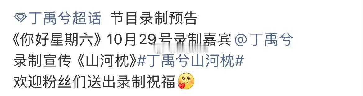 丁禹兮要开始山河枕宣传行程了,第一站hi6 ​​​