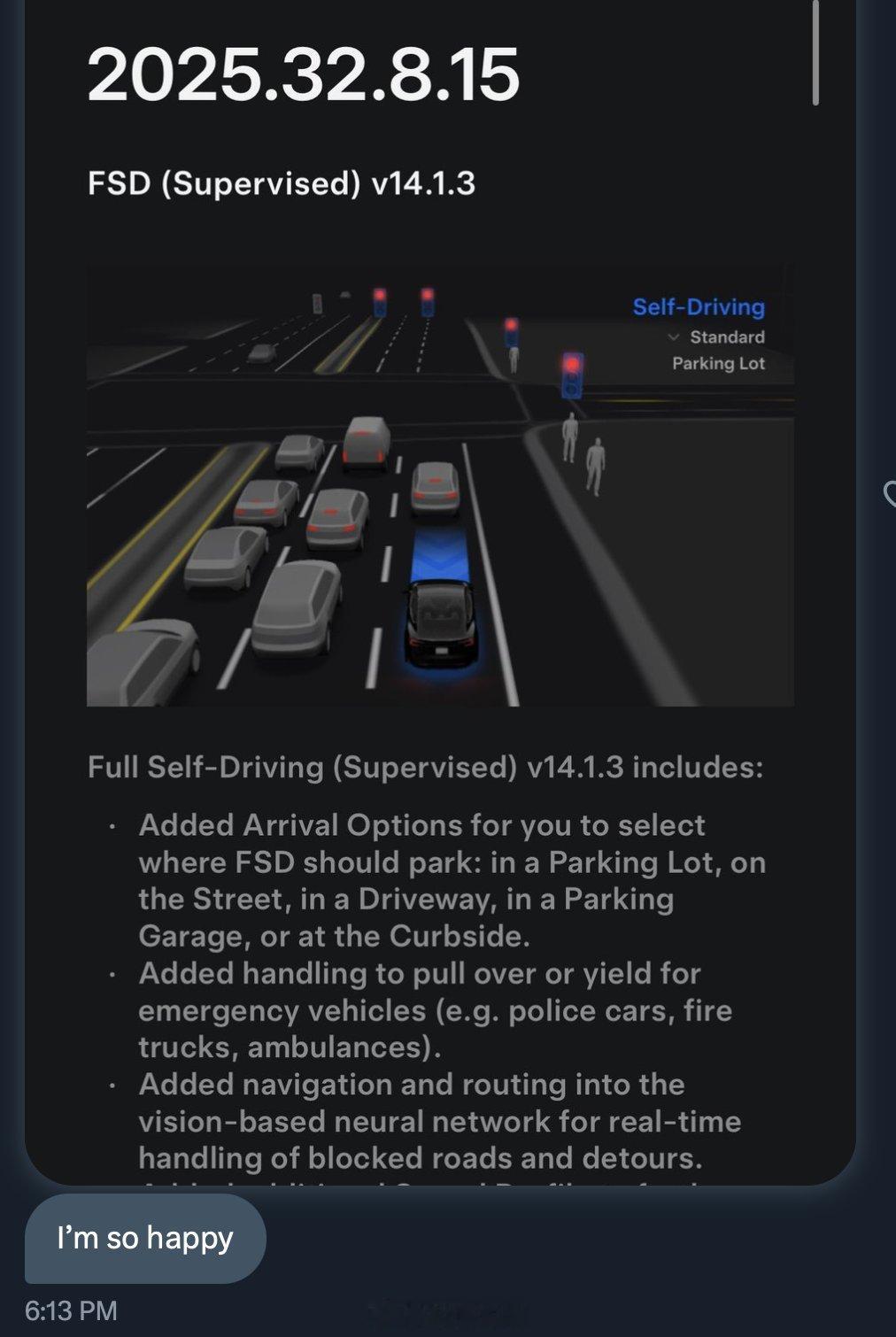 所以 FSD v14.1.3 将会面对更多车主进行推送。