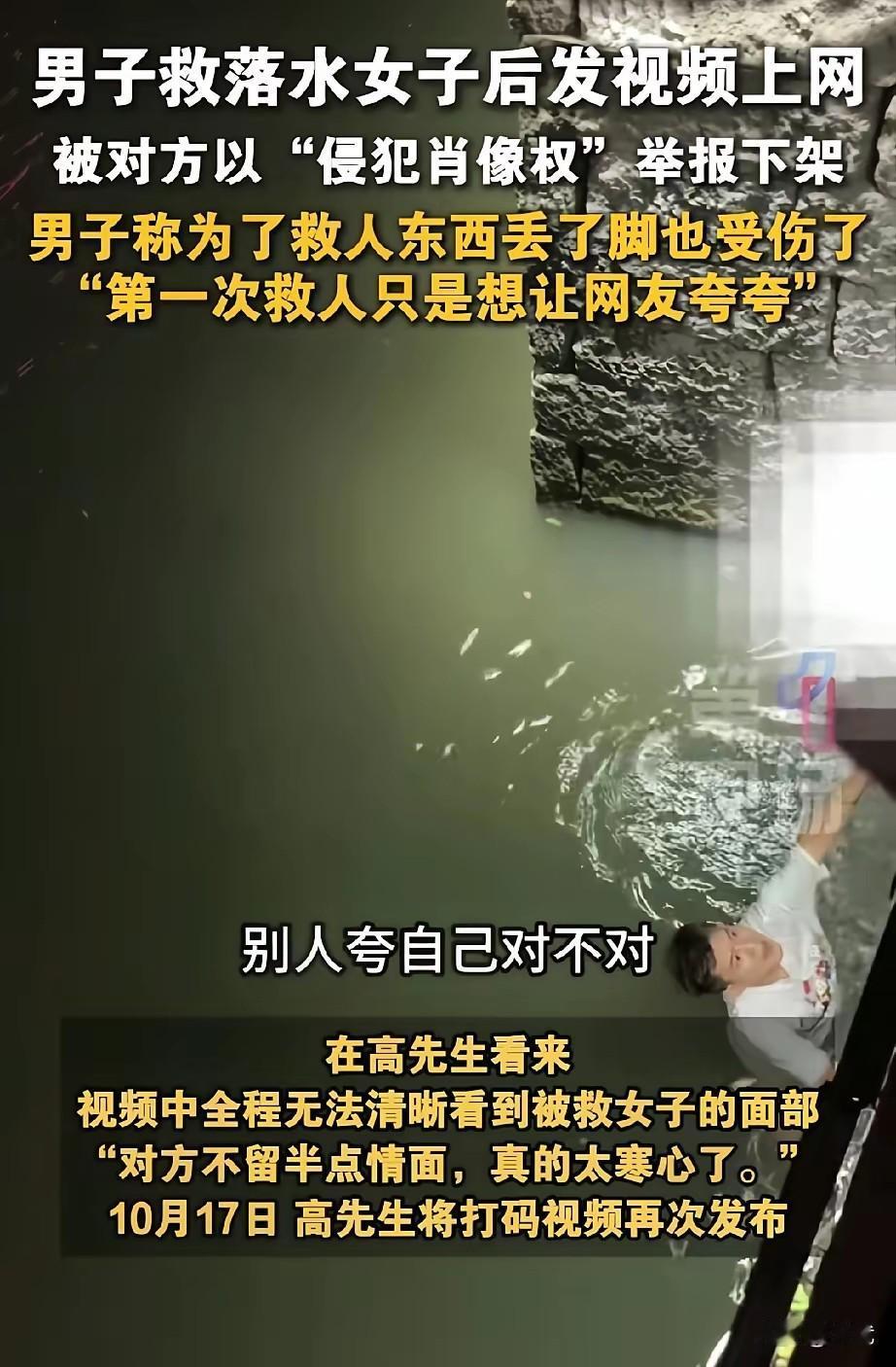 浙江,一女子不慎落水,大声呼救,男子闻声而动,没有丝毫犹豫,纵身跃入河中。河水湍急,他奋力游向女子,用旁人丢下的绳子系住女子腰部,岸上的人用力拉绳,他在水下托举着女子,拼尽全力将女子救上了岸。 女子上岸后,被家人匆匆带走,连一句感谢都没来得及说。男子在跳水的瞬间,脚就扭伤了,兜里的物品也丢了,但他满心欢喜,一瘸一拐地前往医院治疗受伤的脚。回到家后,他发现有人把他救人的视频发到了网上,便喜滋滋地转载到自己的抖音号,想分享这份喜悦,也渴望得到一丝夸赞。 然而,命运却给他开了一个残酷的玩笑。他竟被人举报“侵犯肖像权”,被救女子也联系他,要求删除视频。男子心中满是五味杂陈,待想删除视频时,却发现视频已被下架。被救女子或许是想保护自己的隐私,担心有人恶意揣测她落水的原因,但男子的委屈却如潮水般涌上心头。 男子委屈地说:“以前看到网上别人救人被夸赞,我也想被夸一次,才去转载,而且视频里根本看不清她的脸。”接着,他又表示:“救人没有错,见义勇为没有错,错就错在我救错了人。”这句话,道出了他内心的无奈与苦涩,也让无数人为之动容。 在这个纷繁复杂的世界里,善意有时会遭遇误解,但这不应成为我们停止行善的理由。男子的善举,如微光照亮黑暗,温暖了女子,也温暖了周围人的心。他用自己的行动诠释了什么是见义勇为,什么是无私的奉献。 那些播撒出去的善意,早已化作照亮前路的微光,在岁月里沉淀成最珍贵的精神底色。当我们放下功利的计较,纯粹地践行善良,本身就是对生命最美的馈赠。每一次善举,都是对人性光辉的彰显,无关回报,只求心安。 希望男子别再难受,能理解女子的做法,也别执着于“善有善报”的具体衡量。因为,真正的善良,从来不是为了得到回报,而是出于内心的良知与对生命的尊重。让我们在生活的道路上,多一份善意,少一份计较,让这个世界因为我们的善举而变得更加温暖和美好。