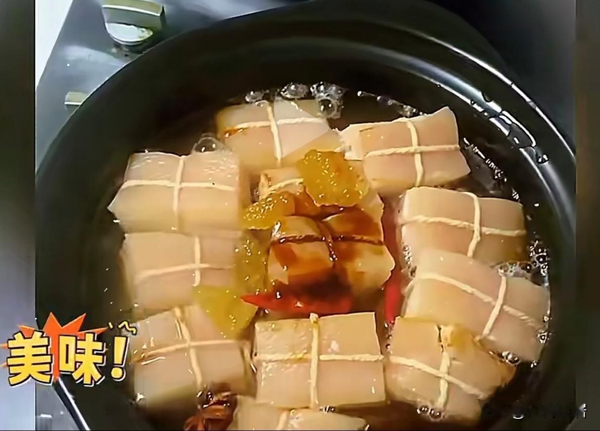 在烧煮红烧肉的时候,用这个绳子把四方块的五花肉绑起来,然后再煮。这个烹饪方式有什
