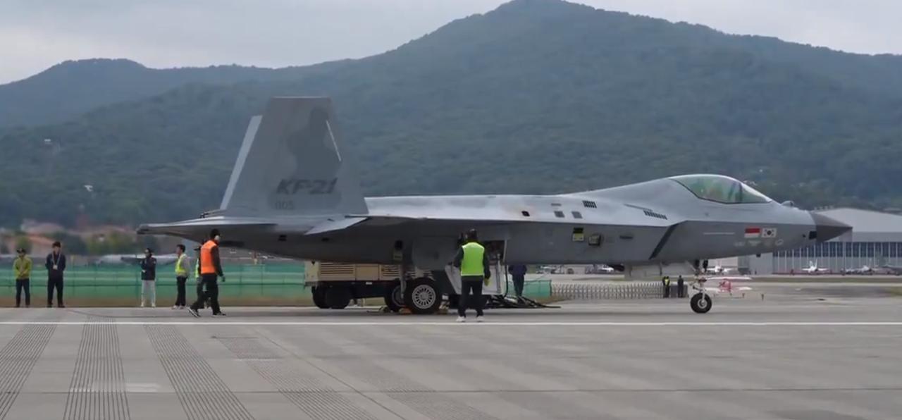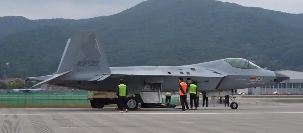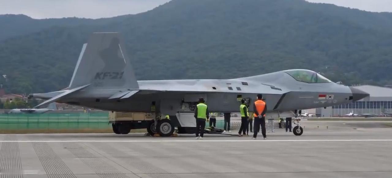韩国的猎鹰KF21发动机,地面试车,这是猎鹰KF21的第五号原型机。驾驶室下方