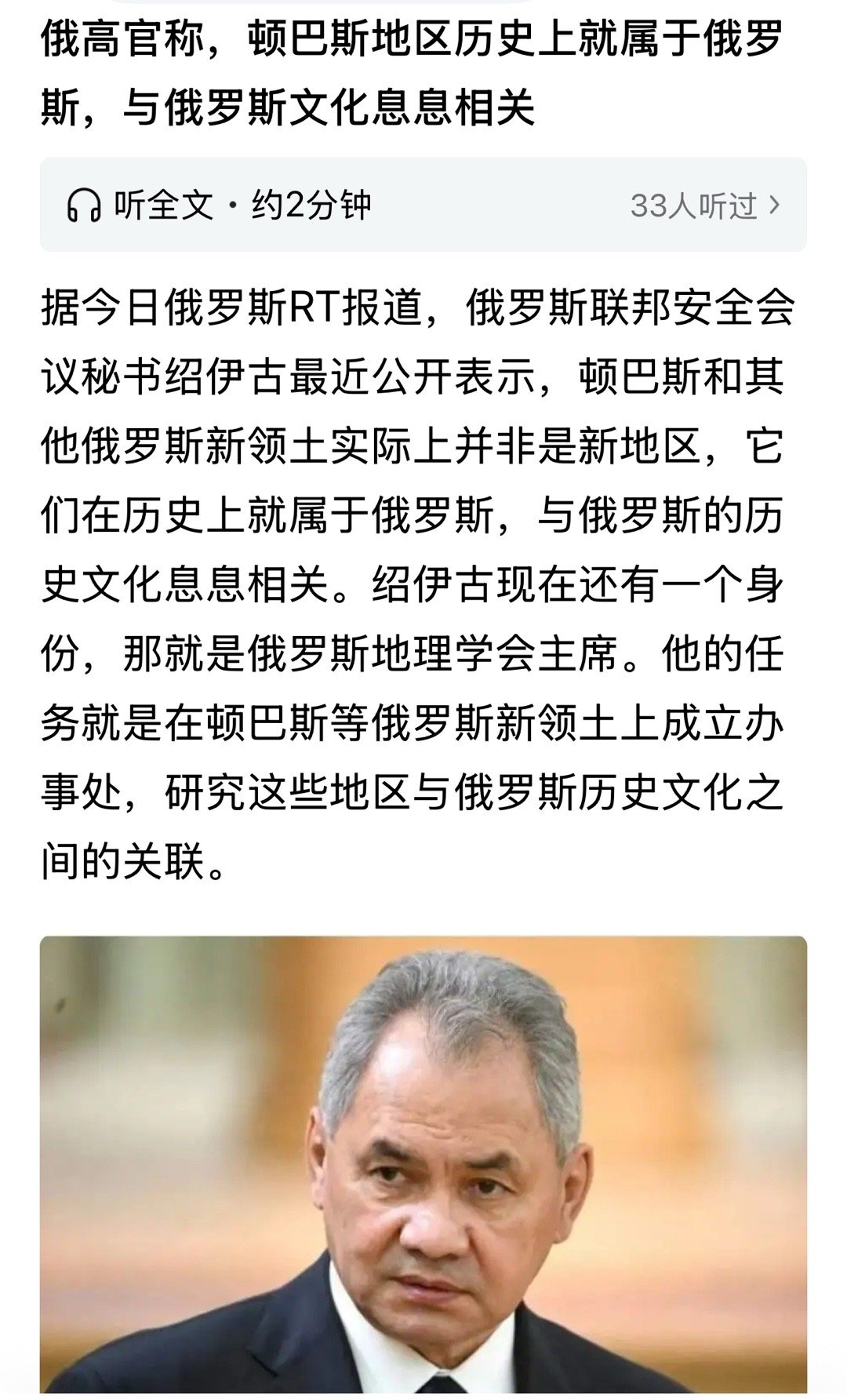 俄乌战争俄高官称,顿巴斯地区历史上就属于俄罗斯,与俄罗斯文化息息相关历史 ​​​