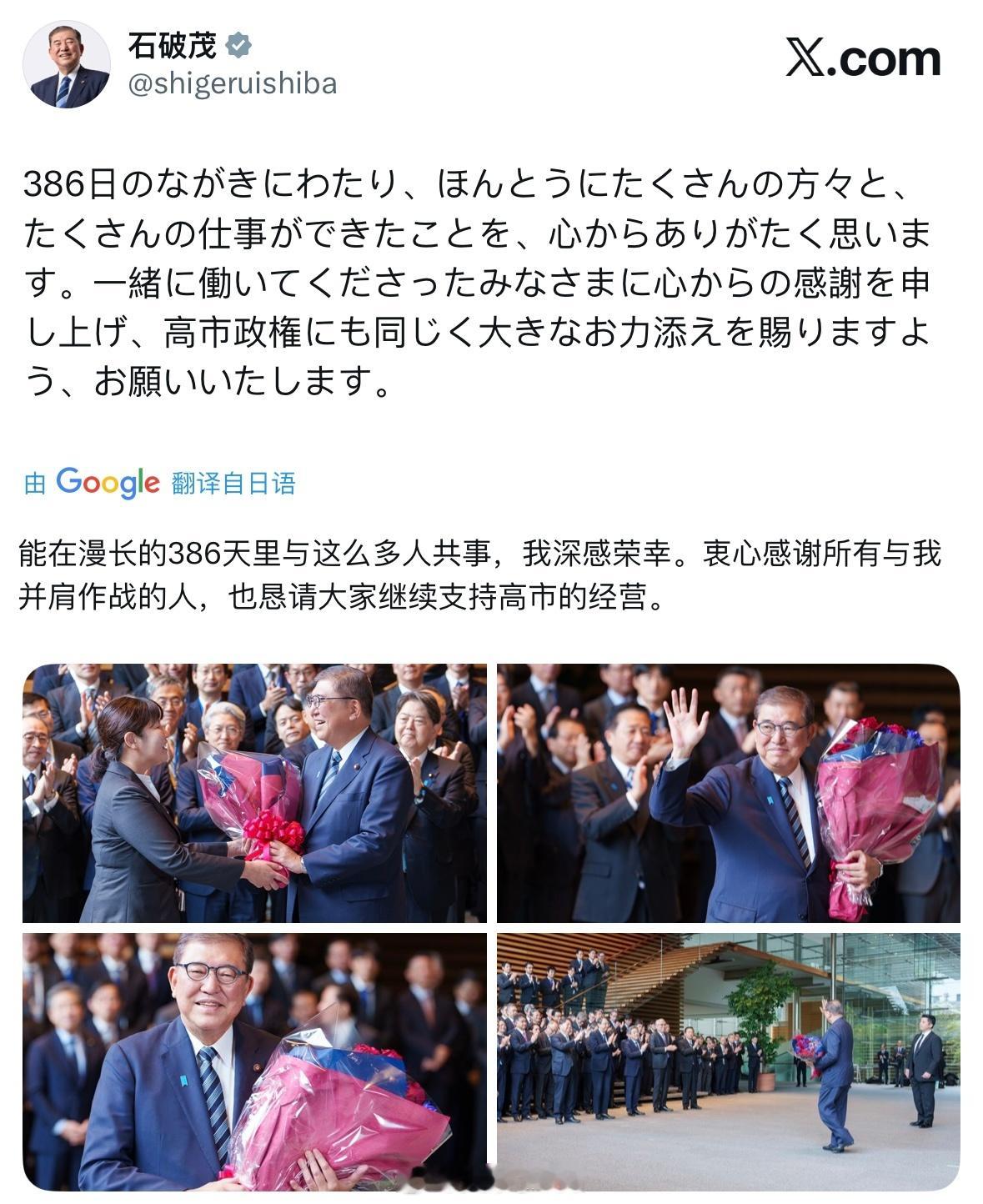 石破茂表示,漫长的386天结束了高市早苗当选首相