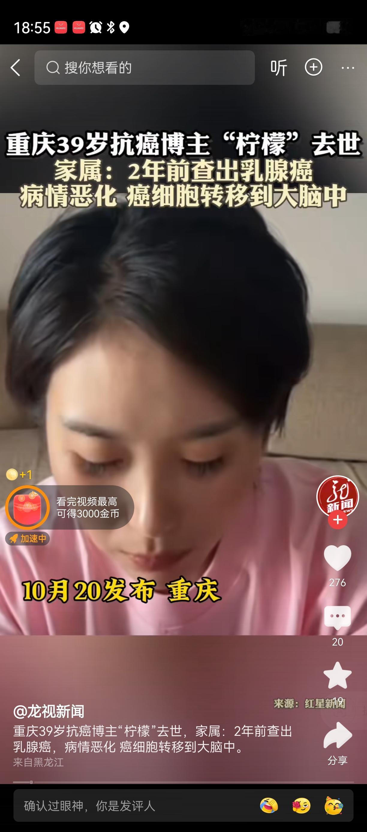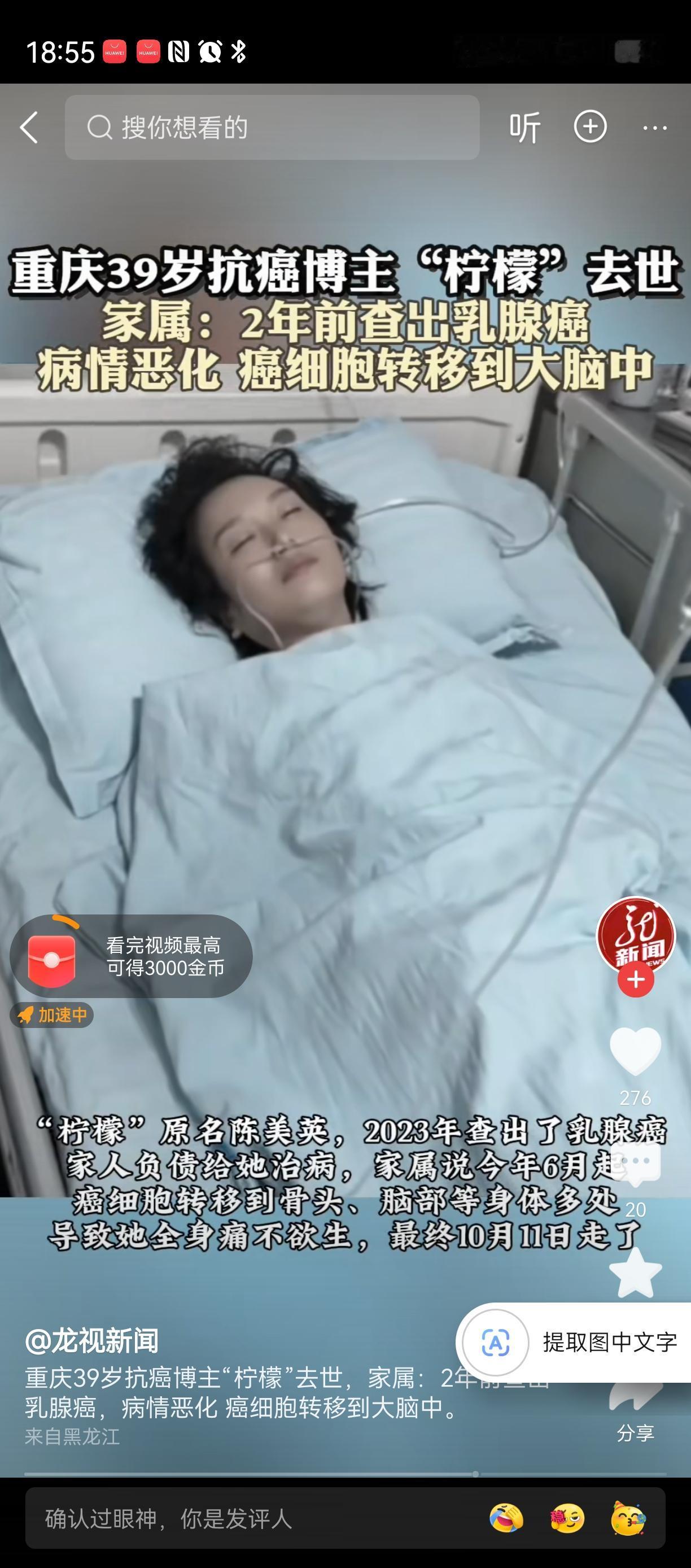 与病魔和解 癌细胞直接转移到脑袋, 我的天啦。。。 这是无解的答案癌症康复 多么年轻的生命, 癌症治好 真的是人间悲惨故事。 其实真的很现实, 有时候学会放弃也不失为一种明智[祈祷] 脑袋都是癌细胞, 那还有些什么快乐。。。