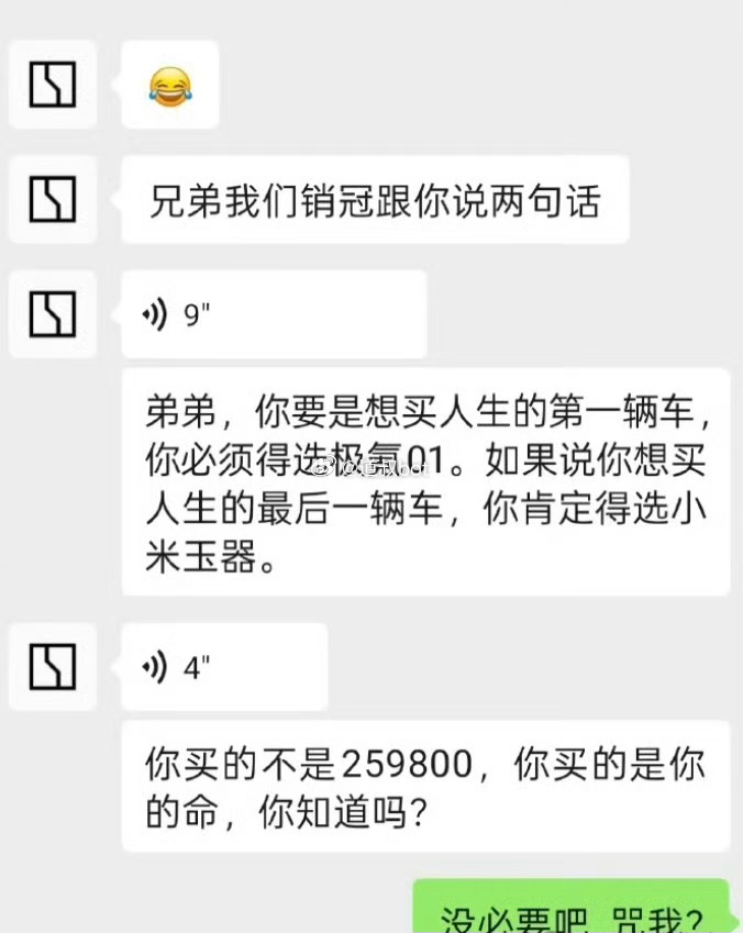 “买人生最后一辆车选小米”极氪销售被指诅咒顾客,后来被开除了……哈哈哈哈哈哈哈哈