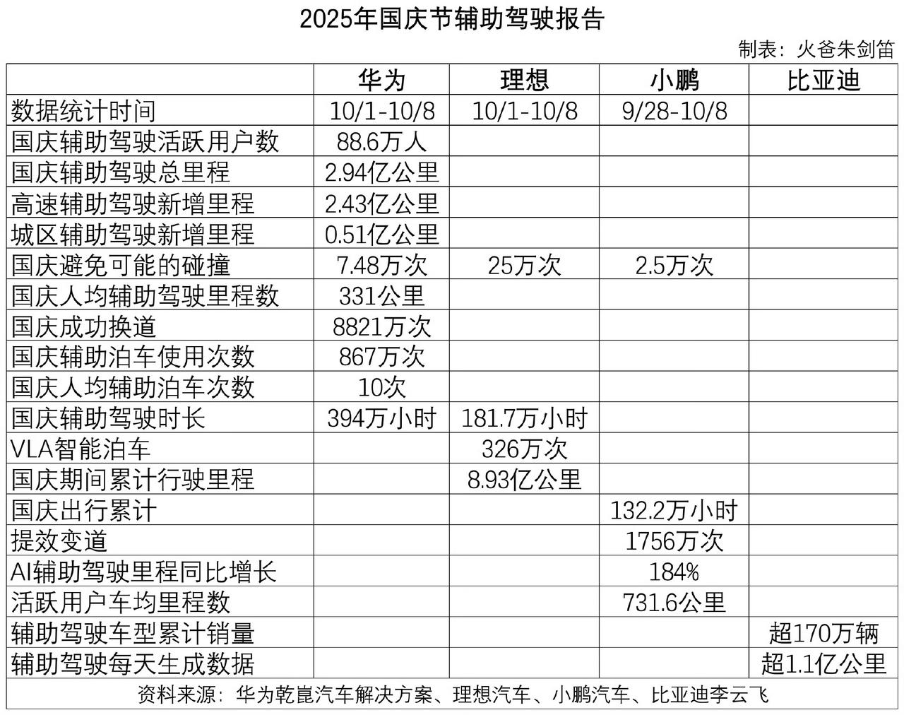 中国辅助驾驶最强的四家国庆数据对比! 其实也没有啥好对比的,因为每家发布数据的口