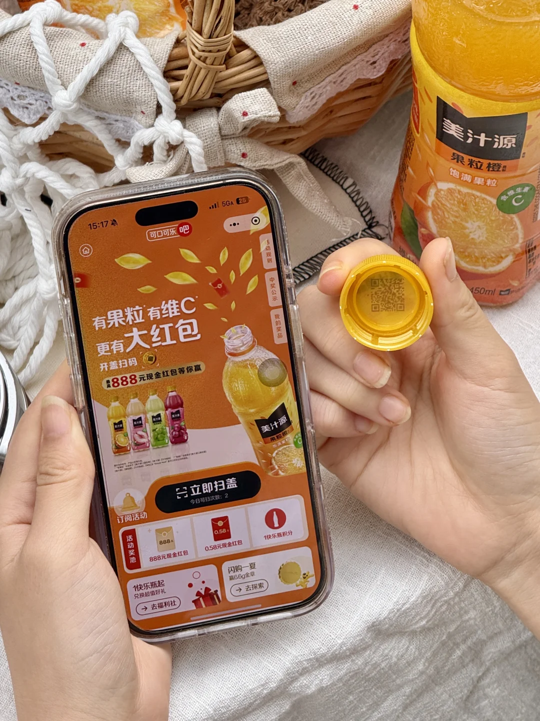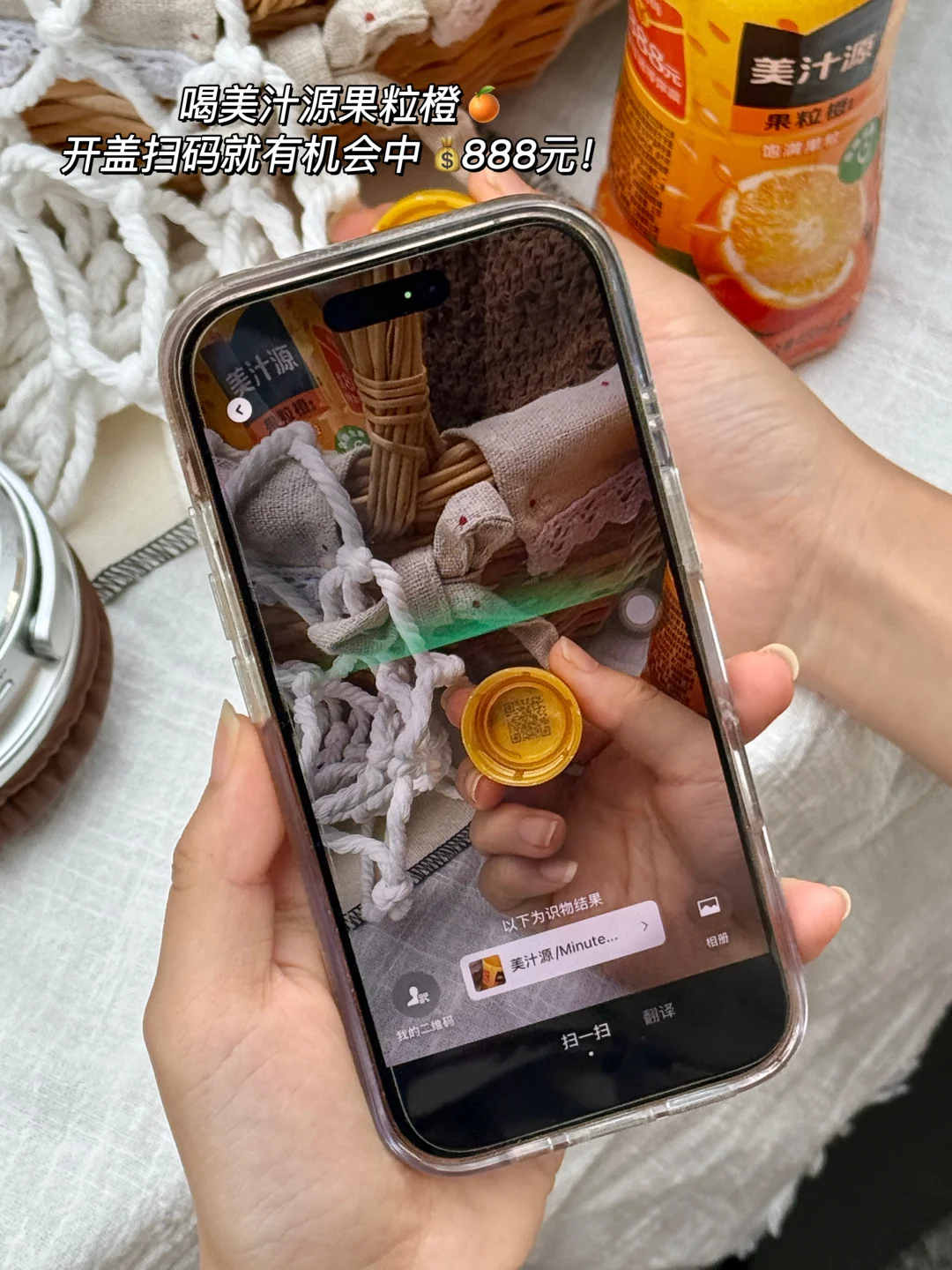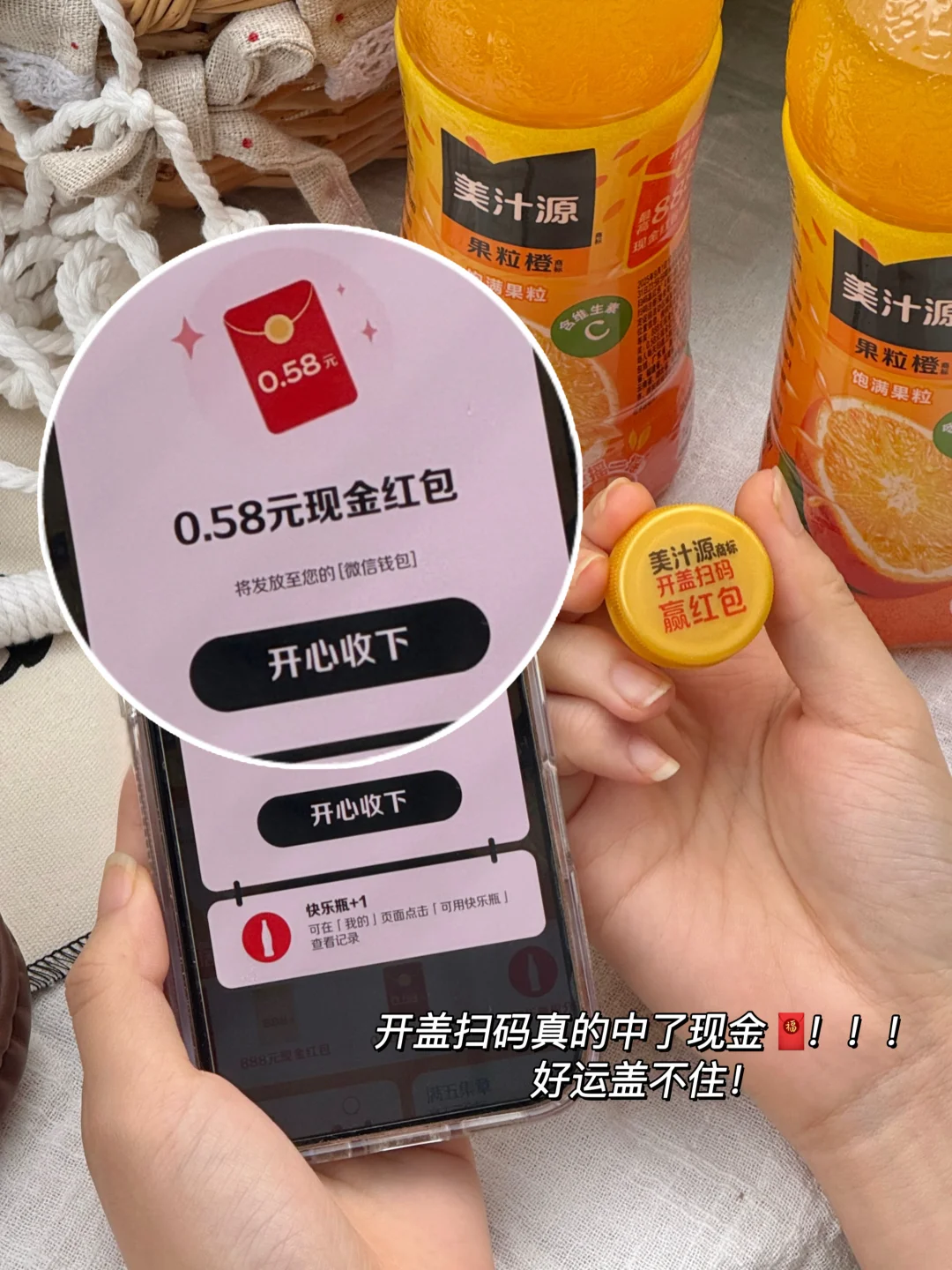 美汁源开盖扫码就有机会抽到红包🧧,最高能赢💰888元!