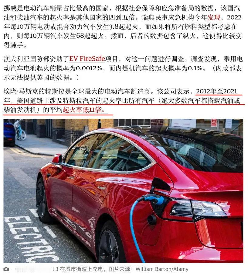 英国《卫报》最新研究数据:2012年至2021年特斯拉平均起火概率低至所有车的1/11,纯电动车比燃油车更安全