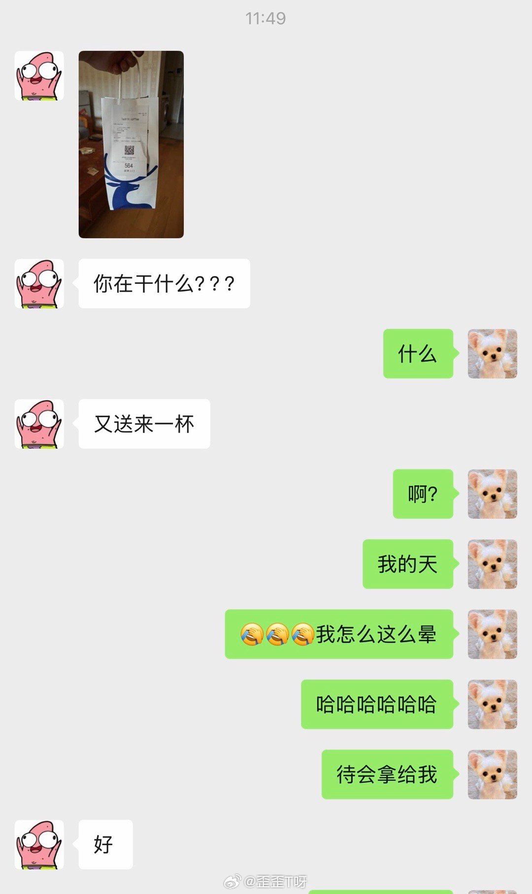 但早起真的好容易晕叨叨啊 点咖啡忘记改地址点到了同小区的小伙伴那里 给他喝了 又点了第二杯 没想到傻到又没改地址 还是点到他那里[允悲][允悲][允悲]