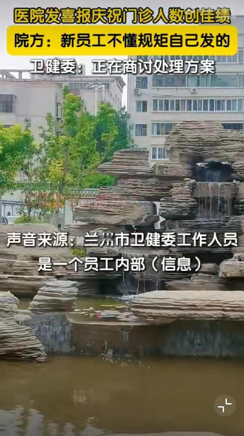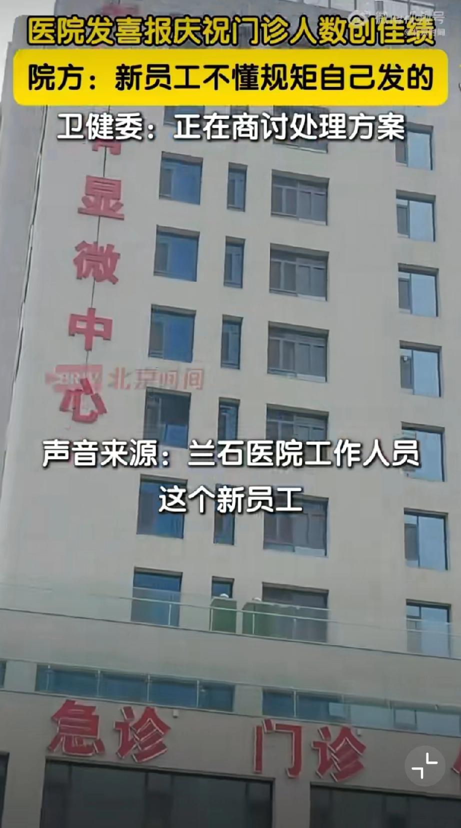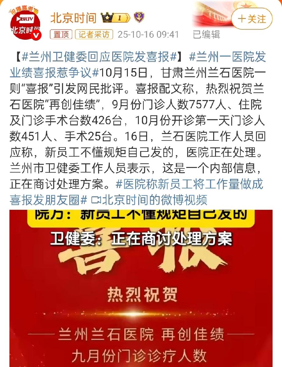 兰州卫健委回应医院发喜报。 2025年10月15日,甘肃兰州兰石医院一份内部“喜