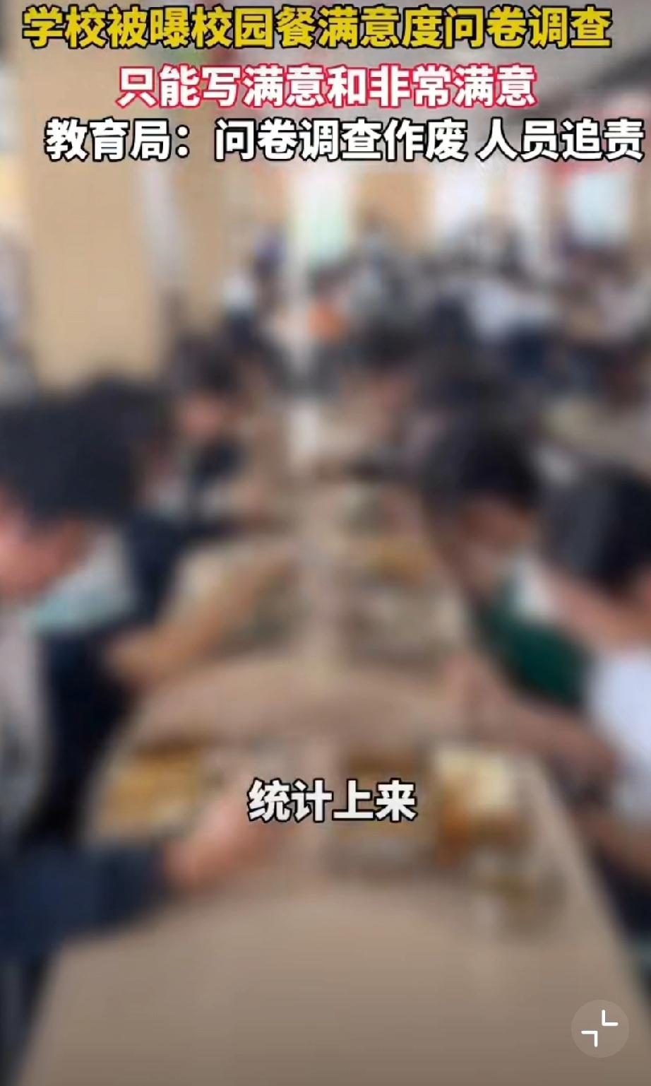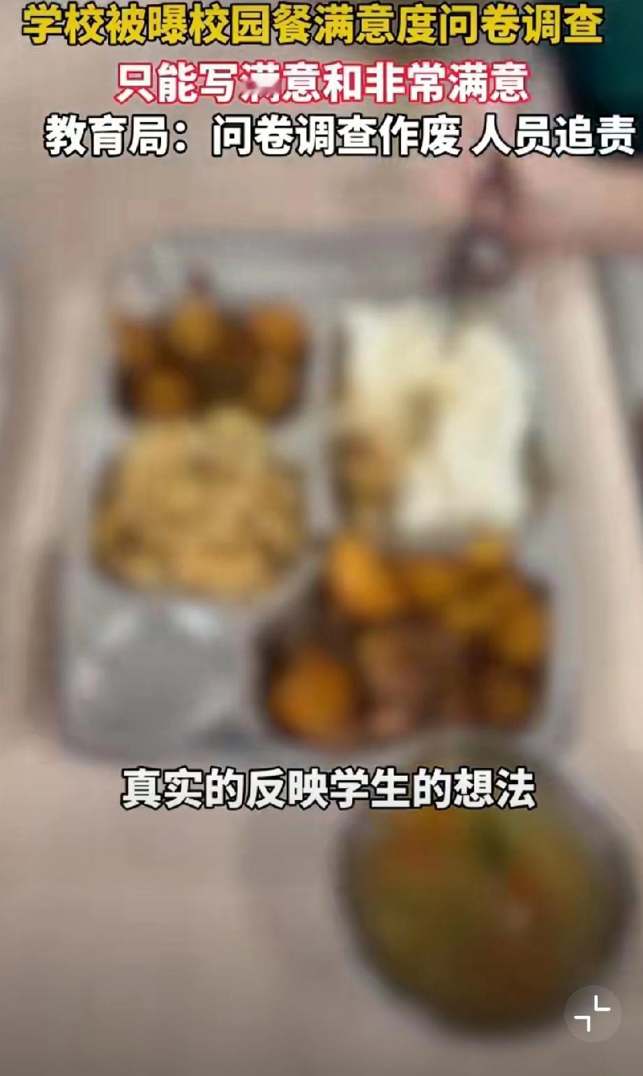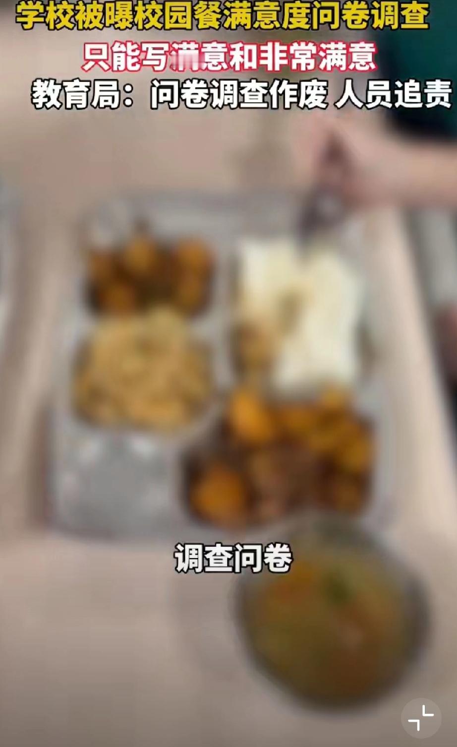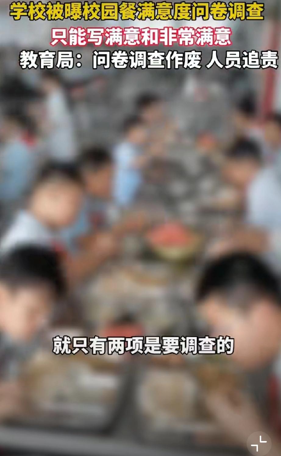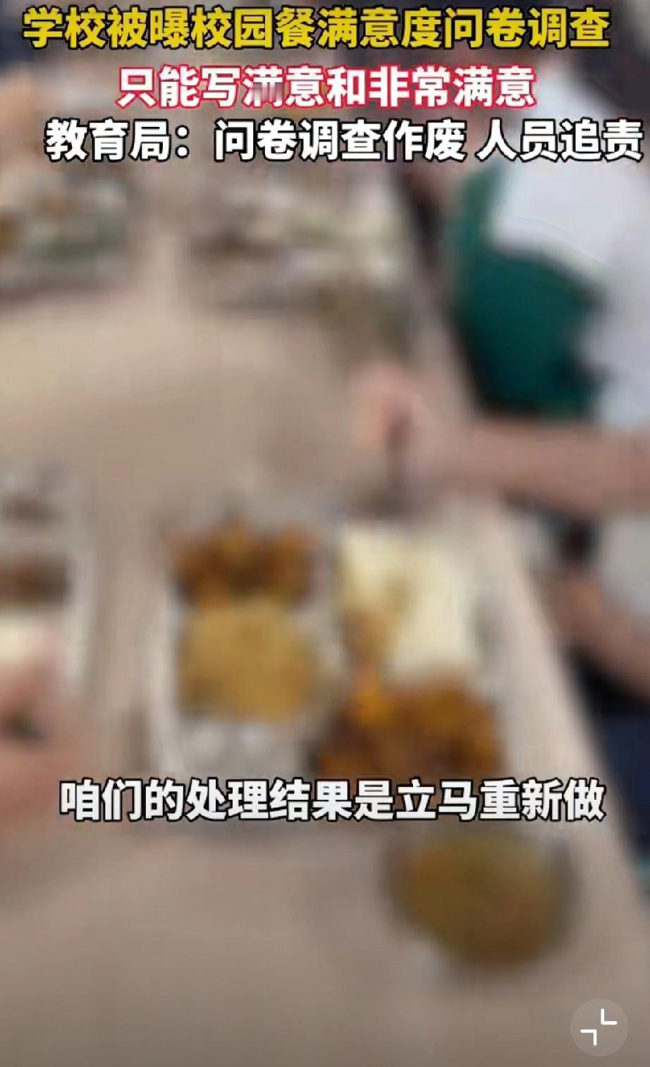 学校被曝校园餐满意度问卷调查,只能写满意和非常满意。教育局:学校个人行为问卷作废