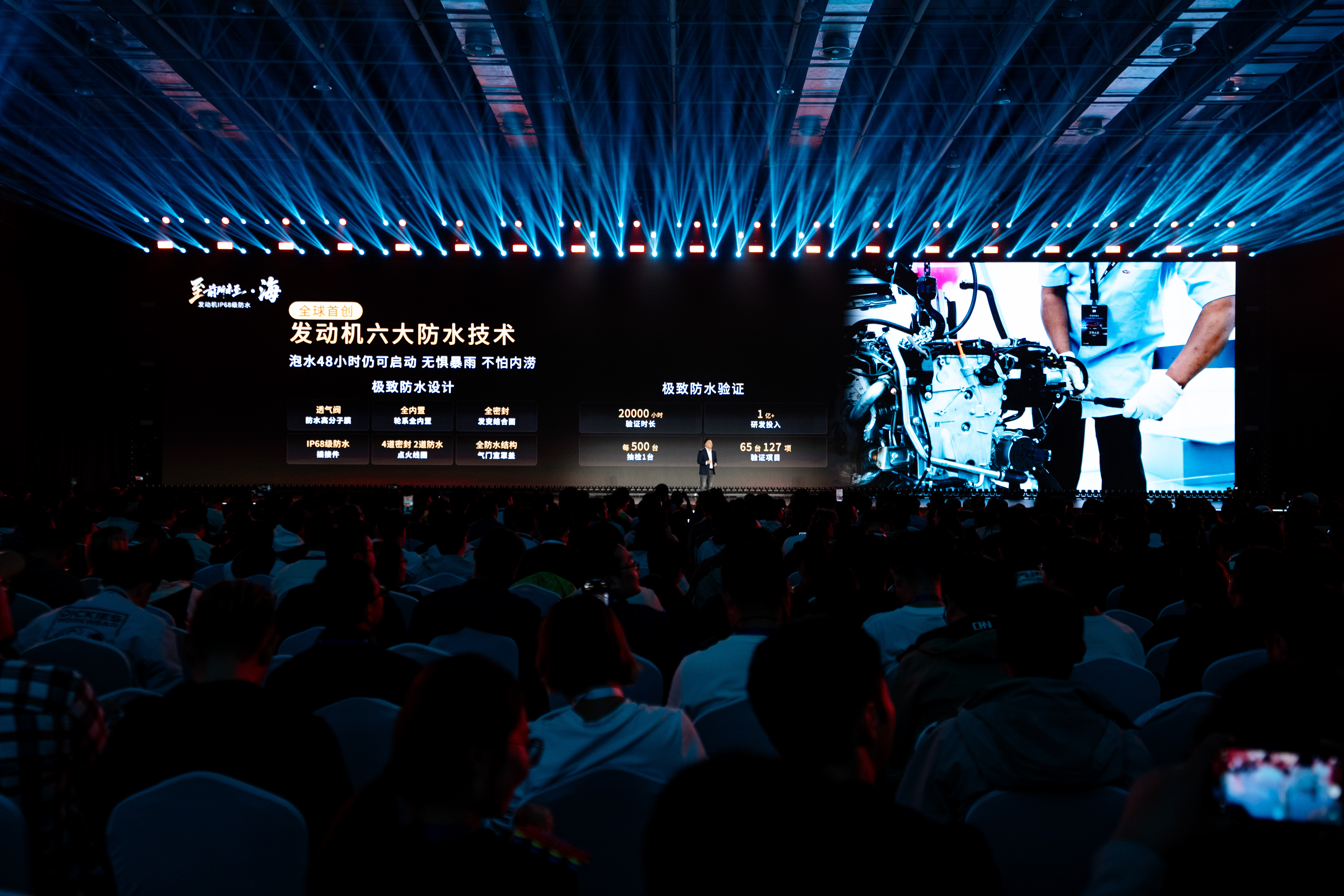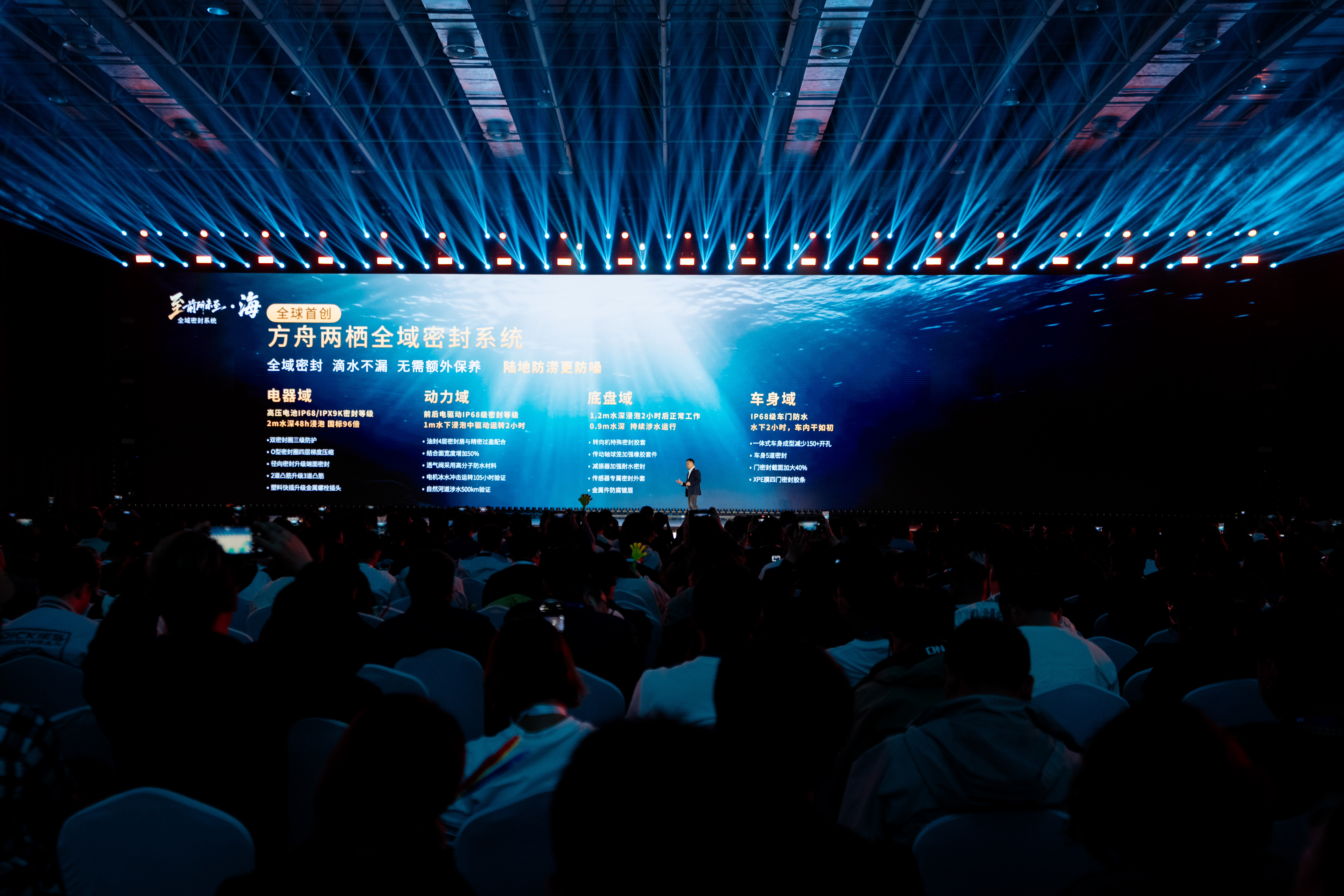 守护上更硬核:全球首创方舟全域密封系统,覆盖四大领域——高压电池2米水深泡48小时(国标96倍),电驱动1米水下能运转2小时;再加上发动机六大防水技术,泡水48小时仍能启动,暴雨内涝完全不怕。
