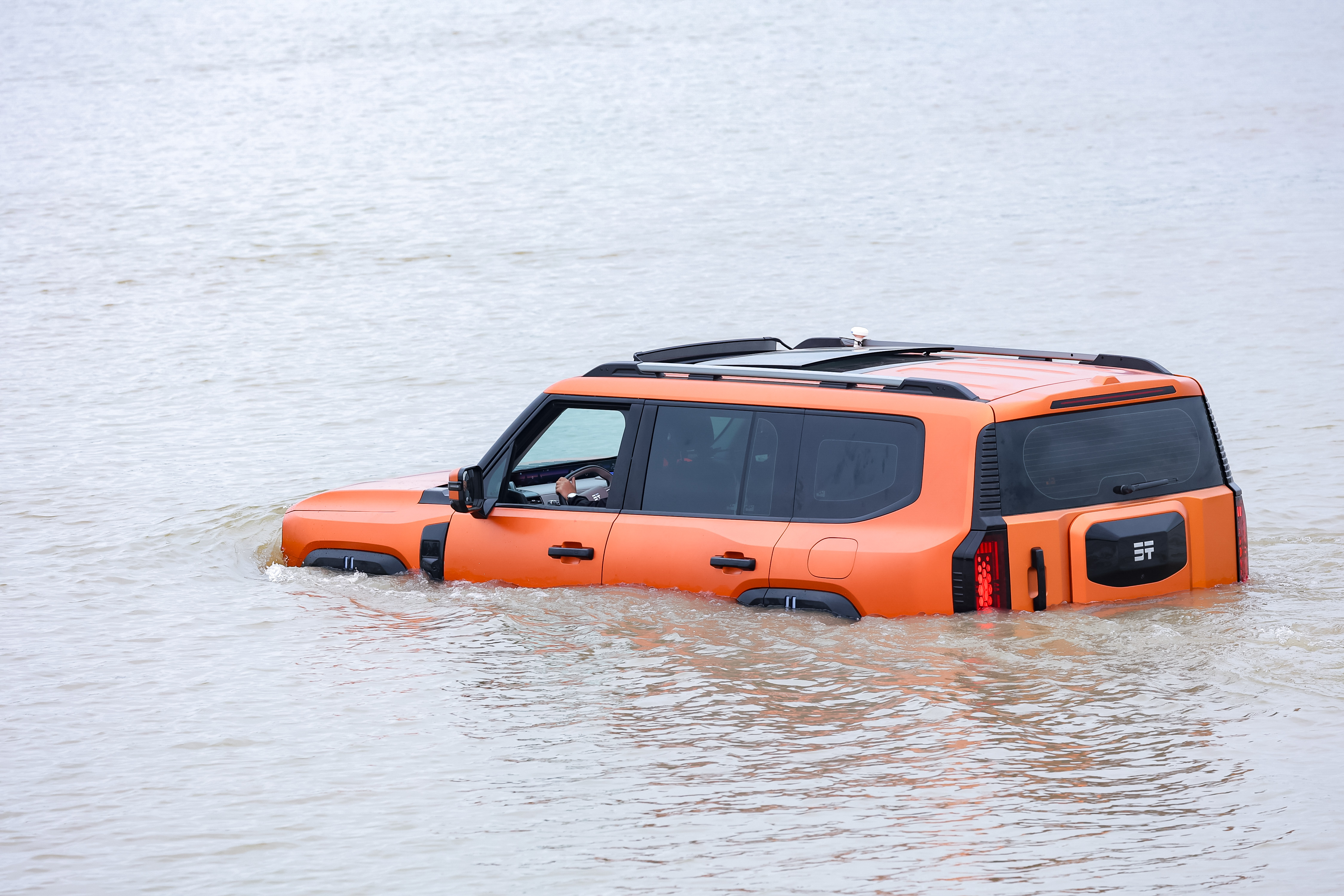 它是人类首款横渡长江的越野车——10月16日在长江芜湖段,22分钟跑完1480米,背后是实打实的技术突破:全球首创ARK方舟两栖技术,让车真正“逢山开路、遇水成舟”;还有超级方舟800V推进系统,3000N推力、60分钟续航,军用航空铝推进器耐压超20米,“车变船”不是噱头。