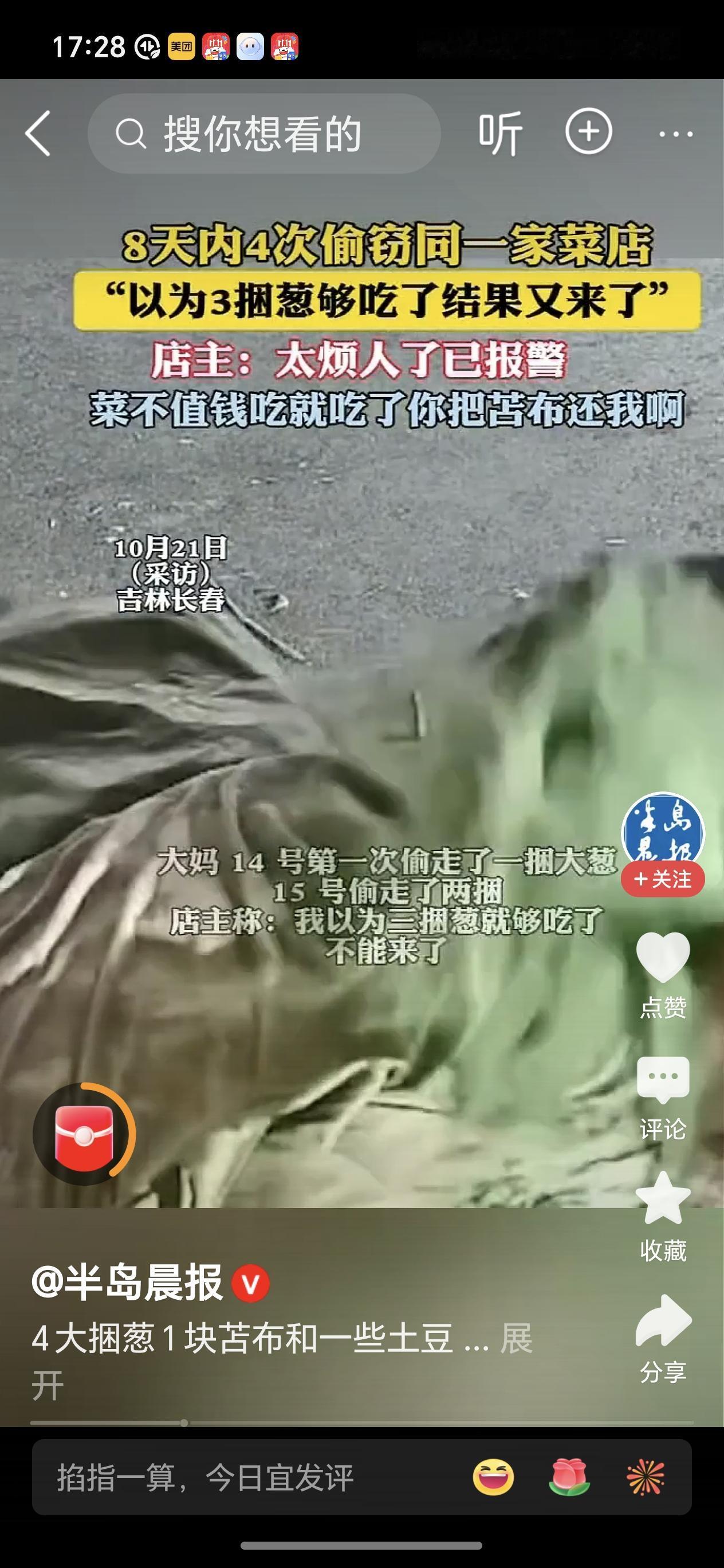 这个老人让人很无语,起初店家心善觉得老人家拿一捆二捆葱吃,东西不值钱就不计较了,