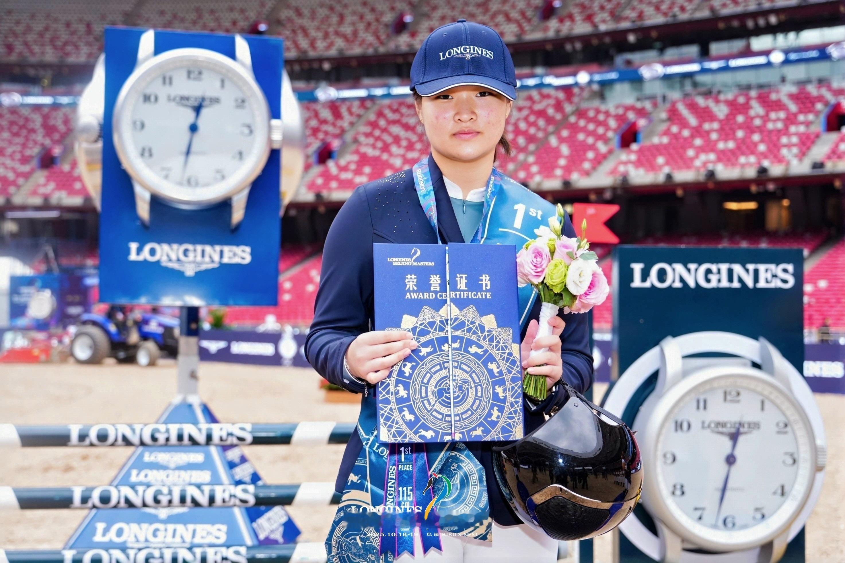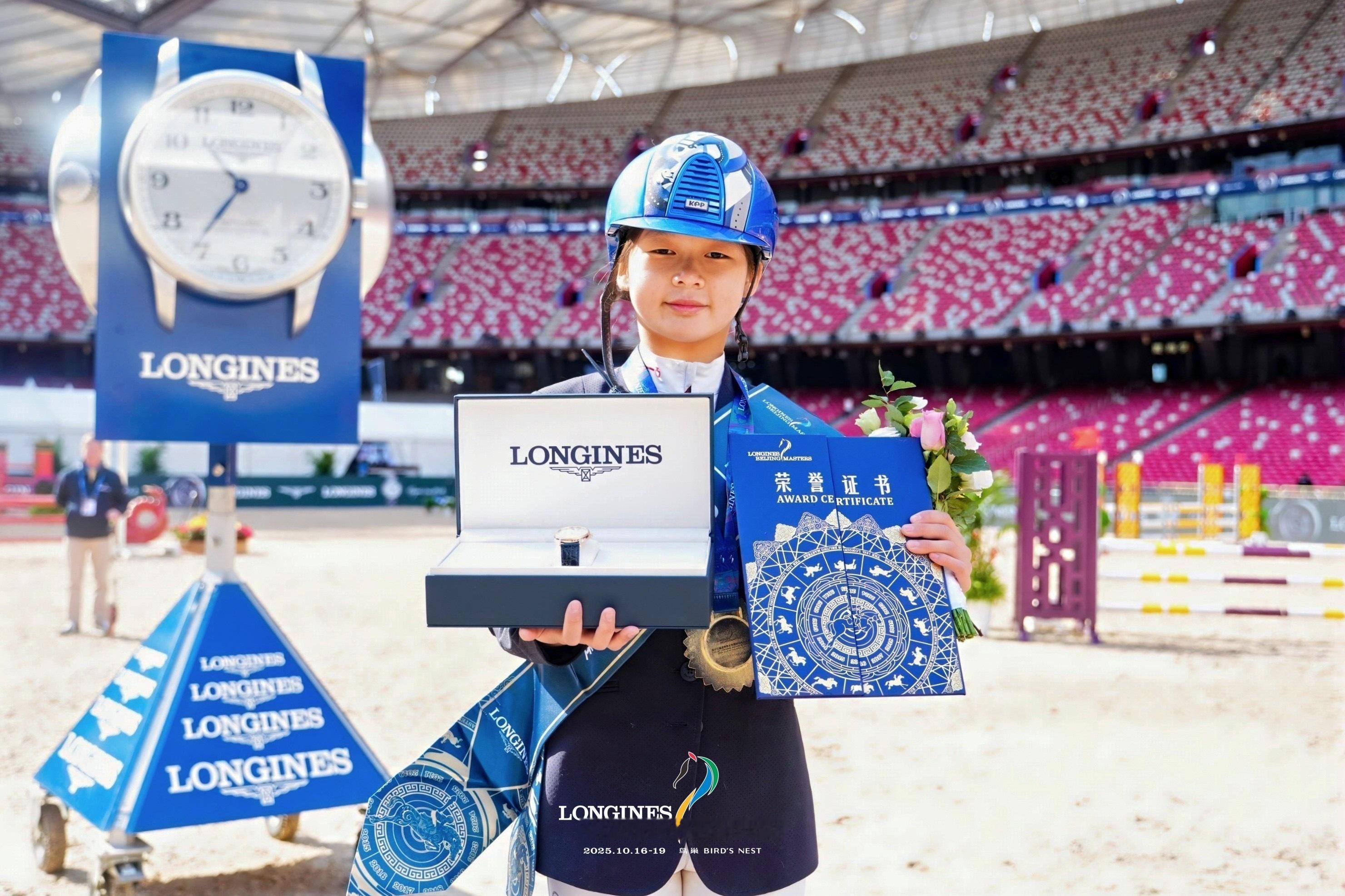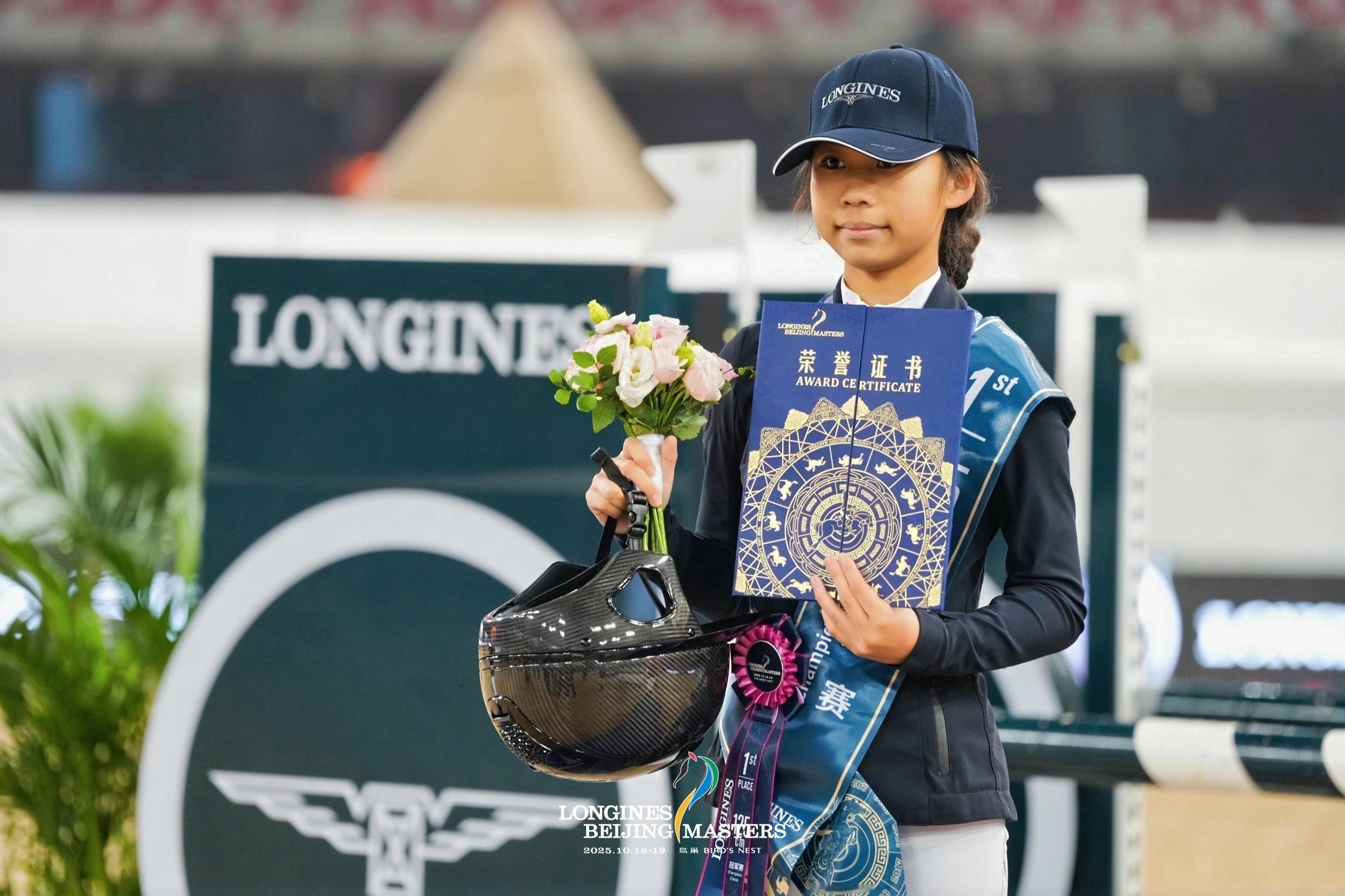 在125CM冠军赛(第一场),彭梓瑄与战驹"朱莉"以0罚分、59.05秒的完美表现强势摘得桂冠;