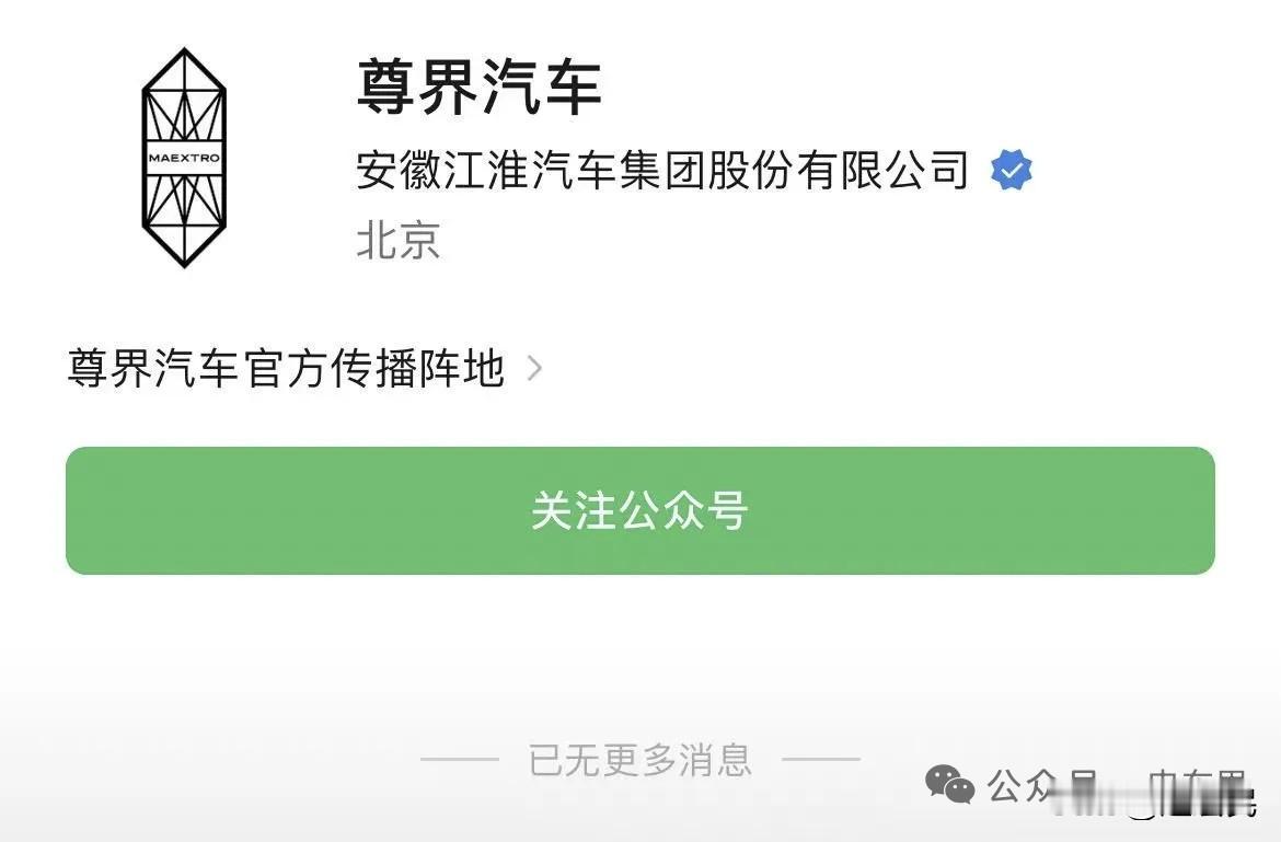 “尊界汽车”公众号主体变更为江淮汽车。#尊界s800#