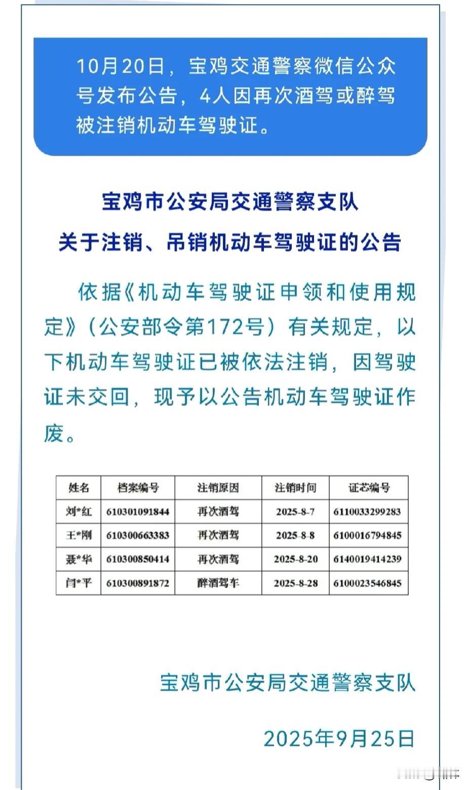宝鸡4人被吊销驾驶证