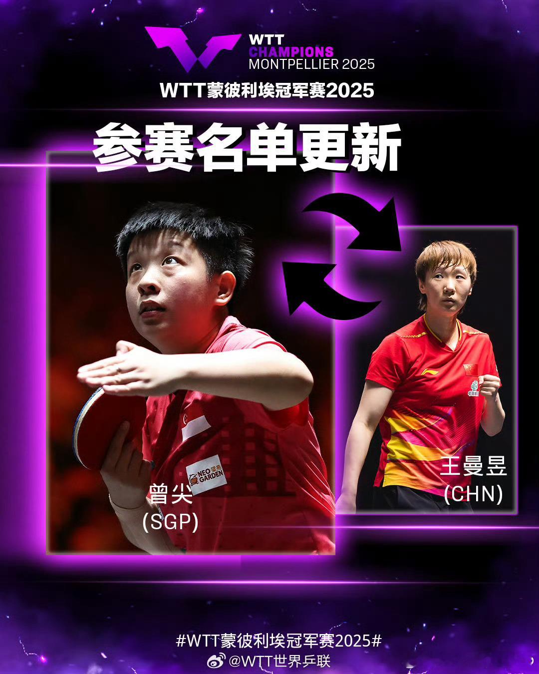 🇨🇳王曼昱退赛,🇸🇬曾尖递补