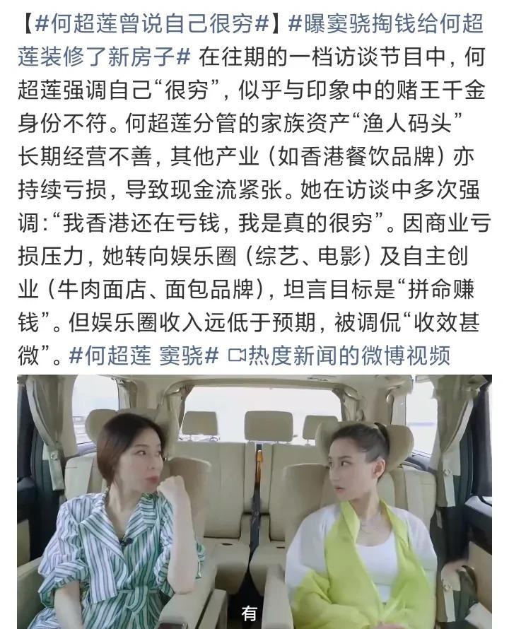 何超莲这“豪门千金穷到哭”的戏码,真把网友看懵了。说自己分管的渔人码头亏到现金流
