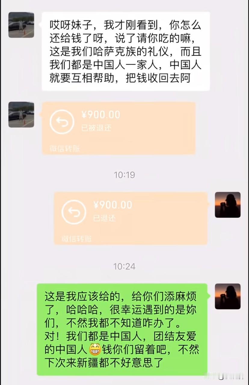 新疆布尔津县,女子自驾游撞到了牧民的羊,牧民上前查看时没有多说话,反而让其带上羊跟他回去。女子忐忑不安的跟着牧民回家,牧民一句话让女子倍感亲切和温暖。 女子开着房车到新疆自驾游,正在她路过一处村庄时看到前方不远处有牧民放羊经过。女子怕自己的车会惊到到羊,就把车速放慢下来并停在路边等羊群过去后才再次启动车子前行。 女子才往前开了一点路就感到车子好像撞到了什么东西,她连忙停车下来查看。真的是怕什么来什么,她撞到了一只羊。 正在女子四处查看想寻找羊主人时,有两个小朋友跑到她车前对她说:你撞到我们家的羊了。这两个小朋友看着像是兄妹,男孩长得虎头虎脑,壮壮的。女孩扎着小辫子很是可爱。 女子让男孩回去找家长来,男孩听到后对女子说:好的。我回去找我的家长来,你不要跑。说完男孩留下妹妹在原地看女子,他回家去找家长。 在男孩的家长没来之前,女子也不敢动车底下的羊。但她看着被撞到的羊,心里很是害怕,心里的各种想法都有。 没过一会,男孩领着一个大哥模样和爷爷模样的人过来。看两人的样子应该是男孩的爸爸和爷爷。大哥到来后没有和女子说话,而是先查看车底下的羊。 大哥查看后说羊骨折了,站不起来,以后也跟不上羊群,养不活了。大哥还问女子怎么开车到村里来?女子说自己是自驾游到这里。 大哥和男孩的爷爷用萨克语说了好几句话,女子一句也没有听懂。接着大哥问女子:你车里有没有放羊的地方?女子说有。 大哥把羊抱到女子的车上,让她开到自己的房子里去。女子照做。 到了大哥家后,他们二话不说就开始杀羊。女子看着一脸懵,也不懂大哥他们是什么意思。从始至终,大哥都没有对女子说过赔偿的事情。 在大哥一家人收拾羊的时候,女子上前和他们闲聊。在聊天中得知大哥家里养了三四十只羊,平时家里的经济来源是靠牧业和农业,一年的收入大概是七八万。 在了解到大哥家的经济情况后,女子的心里很是自责。可她又不知该怎么办,因为大哥带她来到家里后,一直没有说过赔偿的话,反而把她当成远方来的客人一样招待。 家里的女主人拿了好多好吃的放在桌上让女子吃,其他的人也在忙碌着做羊肉。大哥或许是怕女子一个人在家里听不懂本地话而感到尴尬,他又特意叫来在镇上开餐馆的汉族朋友来家里吃饭。 到了吃饭时间,大哥一家都在热情的招呼女子吃饭。原先的那位小男孩此刻也很友善,他还对女子说他长大后要去当兵,妹妹则说自己以后要做老师。 饭后,女子让大哥把二维码给自己,她给大哥赔偿自己撞到羊的钱。大哥平静的说:算了,这顿饭算我请你吃,你一个年轻小姑娘出门在外旅游也不容易。 女子坚持要给,大哥坚持不要。看到大哥这样,女子想起车上有过年时妈妈给的压岁钱。 于是,她回到车上拿出900块压岁钱放到红包里,另外又拿了一些零食放到袋子里。拿了这些东西,女子再次回到大哥的家里,她偷偷的找了一个地方放好,然后她和大哥一家人告别。 大哥和女子互相留了联系方式,大哥还交代女子下次再来阿勒泰时要到家里来玩。 在女子回到车上没过多久,大哥就给女子发来信息,说他看到了女子留的钱和零食。大哥还在手机上把钱给女子转了过来,说不要女子赔偿,称大家都是中国人,是一家人。 大哥还说,家里在建牛棚和羊棚,建的差不多了,就算女子没有撞到羊,他们也要宰羊吃的。这次撞到了,就提前吃,没有关系。 看着大哥转过来的钱,女子没有没有收,她给大哥退了回去。看到女子坚持要给钱,大哥则让女子给他家里的地址,说要给女子寄新疆的羊肉,让女子的家人也尝尝新疆的羊肉。 看到大哥这样,女子由原先撞到羊时的忐忑不安变成感动和温暖。特别是大哥说的那一句:都是一家人,要互相帮助,化解了所有的不愉快。