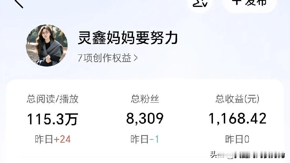 从0.01到1168.42,我到底经历了什么?应该继续坚持下去吗? 从不懂怎么写文章,到如何写文章,自己一个人琢磨,刚开始在头条只是为了看热点,后来却神奇的发现还有0.01元,这让我开心了好半天。 那时候开始研究头条创作,原来在头条不只是可以当读者,还可以成为创作者,让别人成为自己的读者,这让我有了当创作者的想法。 刚开始并不知道该写什么,这个时候,我只能慢慢地学习别人的写作技巧,开始先写起来,后来发现即便写了,也只有几分的收入,甚至只有0元。 好不容易找到话题,写了爆款以后,平台却给我发来了消息,文章出现了问题,后来我认真看了平台的规则,才明白了原因,之后写文章也一直小心翼翼的,虽然还是会出现问题,但是,我还是一一解决了。 我们不怕有问题,怕的是因为某些问题,一直纠结,却不找出原因去解决。 后来通过自己的努力,一篇文章挣到了20,60,80,100,300,慢慢地自己也爱上了写作,如今这点几分的收入,甚至只有0的收入,真的让自己挺失落的。 不过,我依然在坚持,因为只有坚持了,才会有收获,如果不坚持,那肯定没有任何结果。 如果你看到这样的结果,你还愿意坚持吗?欢迎在评论区写出自己的想法。