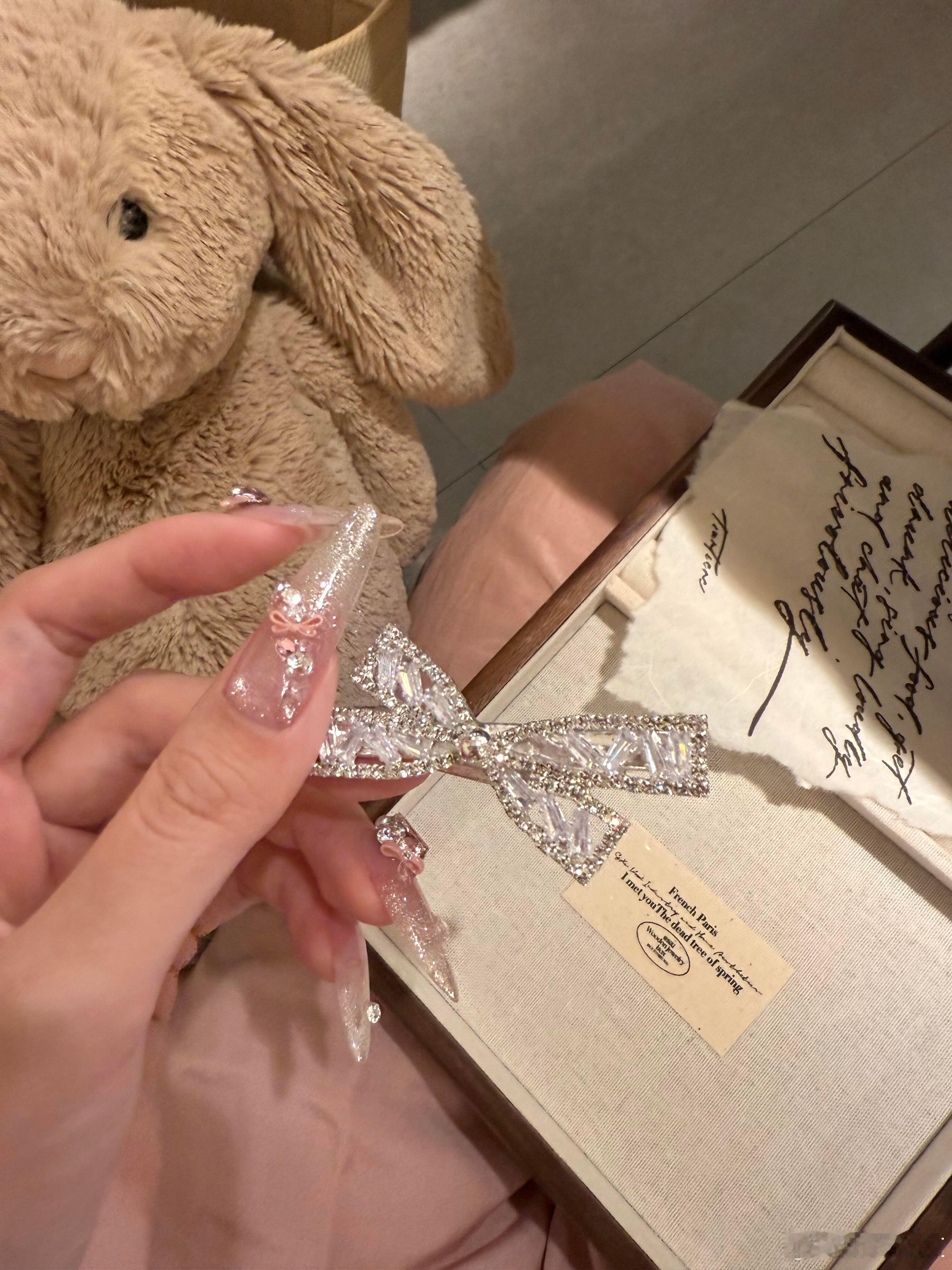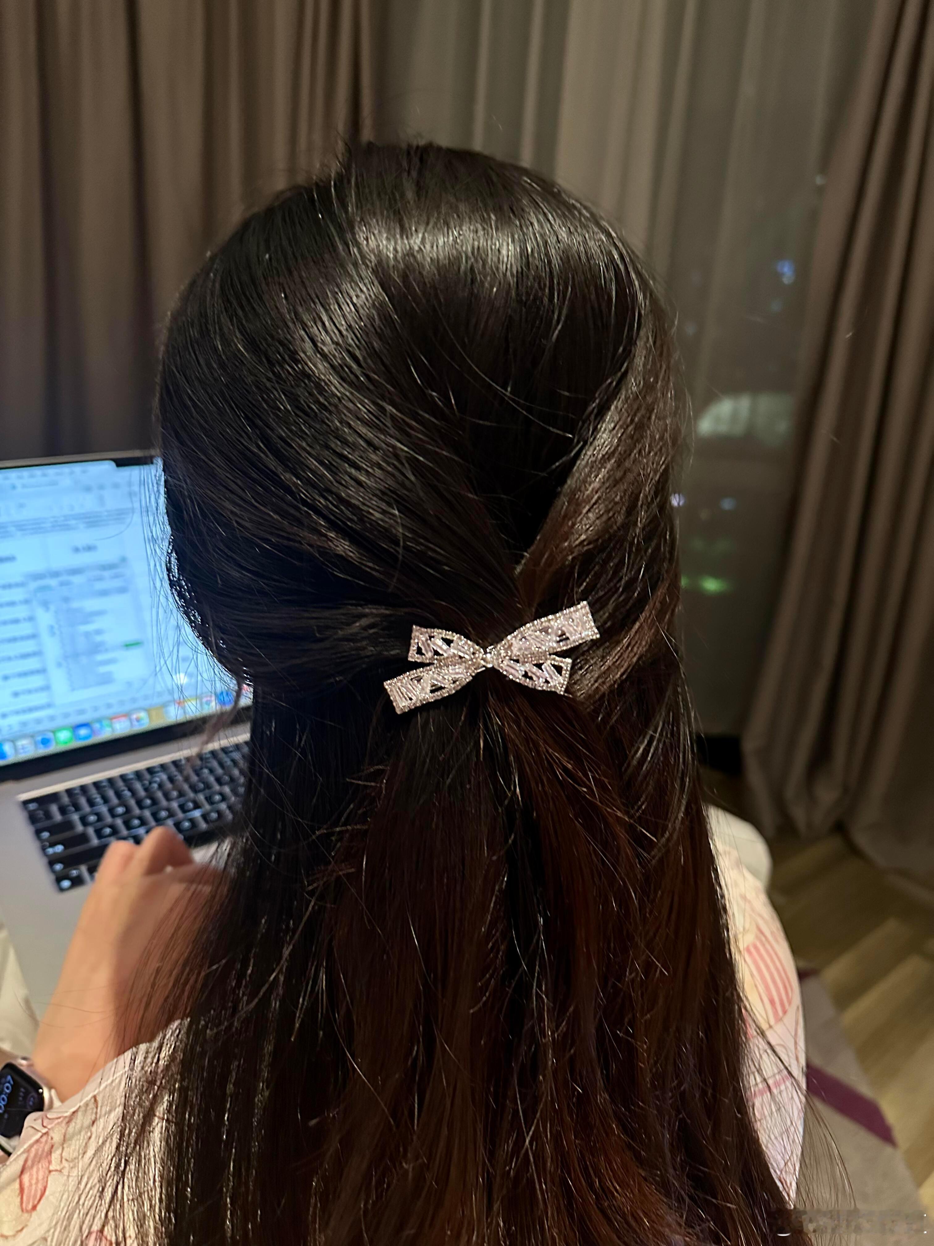 终于知道为啥大家都喜欢蝴蝶结了,这个蝴蝶结造型发夹,主体以银色金属为基底,满镶透
