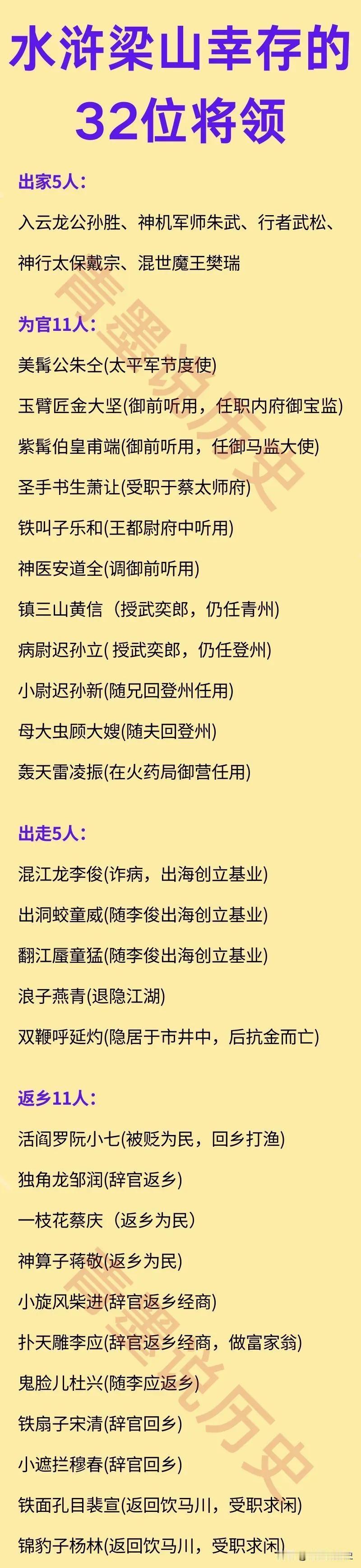梁山幸存的将领中,有4位,根本就没有出征方腊。 这4位都是技术人才,有金大坚、萧让、乐和和皇甫端,在出征方腊之前明确被朝廷留作他用。 朝廷把他们留下有两层意思,一层是看中了他们的技能,想让他们的技能为自己服务。 另外一层意思,则是向另外104人传递信号,告诉他们只要立上战功,对朝廷有用,就可以提拔使用。 从战场来看,这四人没有高强的武艺,属于战场的累赘。 但是从结局来说,这四人却又有极好的命,不用像那些将领们冲锋陷阵,宋江的招安政策,直接让他们不费一根毫毛,归属了朝廷。