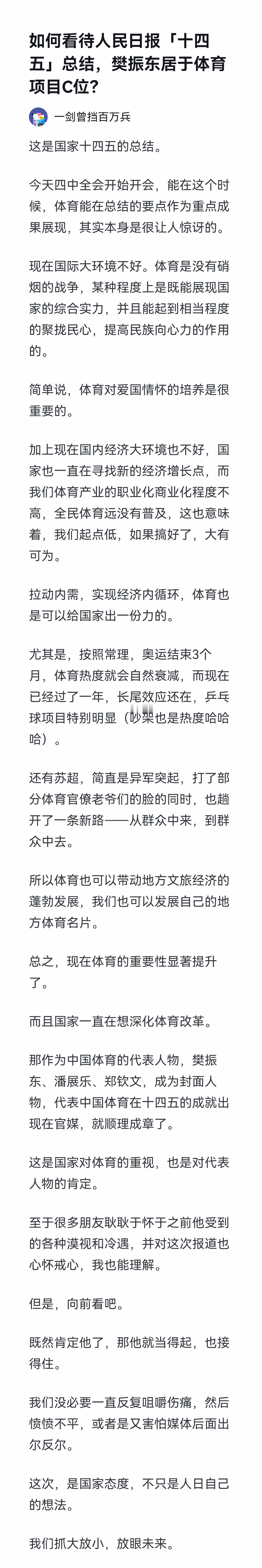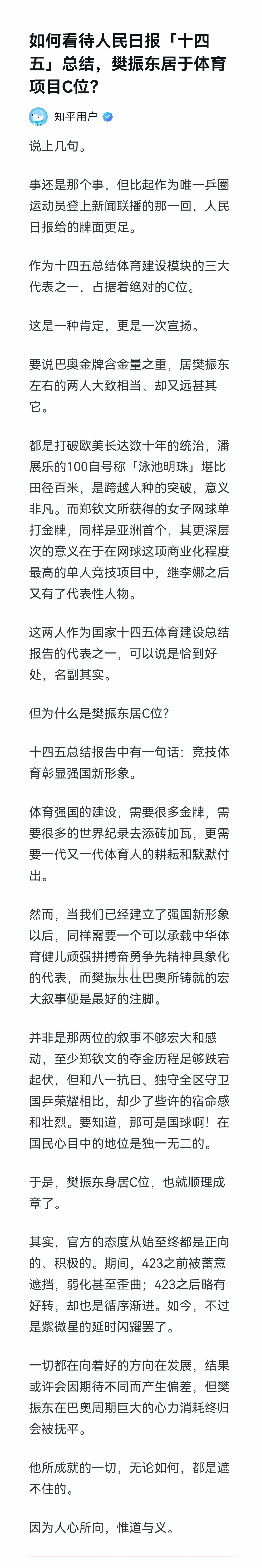 如何看待人民日报「十四五」总结,樊振东居于体育项目C位?