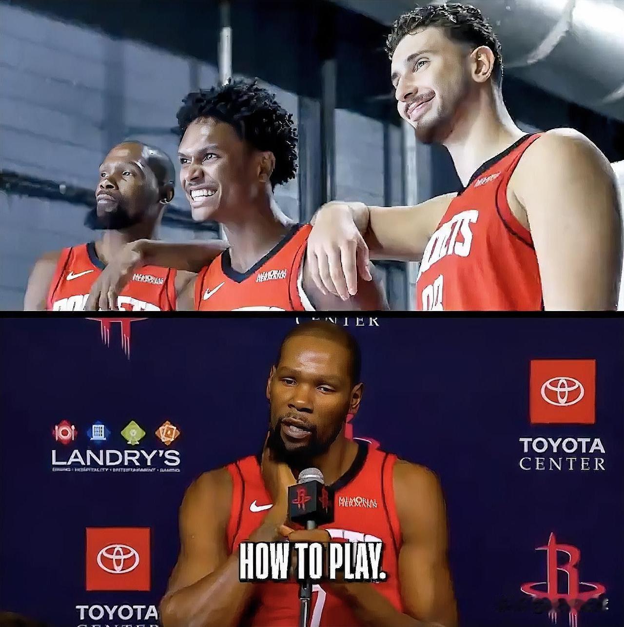 杜兰特说的真对啊! 今日,KD在采访时谈到队友申京时表示:“我曾和一些擅长自己位置的内线球员一起打过球,他们是非常棒的角色球员,能够在低位打得很好,打好掩护,能在篮筐上方完成进攻,能封盖。但申京几乎可以做所有这些事情,而且还能像后卫一样在外线控球。我迫不及待想看看我们是如何融合在一起的,期待这一切能带来什么。” 在杜兰特看来,申京不仅仅是一个执行战术的终结点,而是一个进攻的发起者和组织核心。申京在近期的季前赛中,展现了惊人的策应能力,单场送出13次助攻仅1次失误,被球迷称为火箭版约基奇。杜兰特敏锐地捕捉到了申京这种能够支配球、作为进攻轴心的独特价值。 对于阿杜而言,与申京这样一位高球商的内线搭档,意味着他不需要大包大揽,可以更高效地发挥自己的终结能力。在季前赛中已经看到杜兰特更多地扮演无球终结点角色,这正是得益于申京在外线的持球策应。当对手包夹杜兰特时,申京可以处理球,而当对手重点盯防申京时,杜兰特又能获得绝佳的进攻空间。 尽管杜兰特是超级巨星,但球队的战术核心很可能会是申京的策应与杜兰特的终结相结合。申京本人对于杜兰特的加盟也非常兴奋,他认为杜兰特的丰富经验和对比赛的深刻理解,将极大地提升球队,并帮助火箭重塑辉煌。KD不仅认可申京现在的实力,更看好他未来的巨大潜力,认为他的独特打法将是火箭崛起的关键。