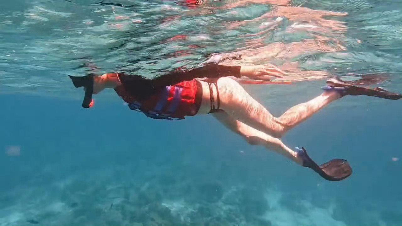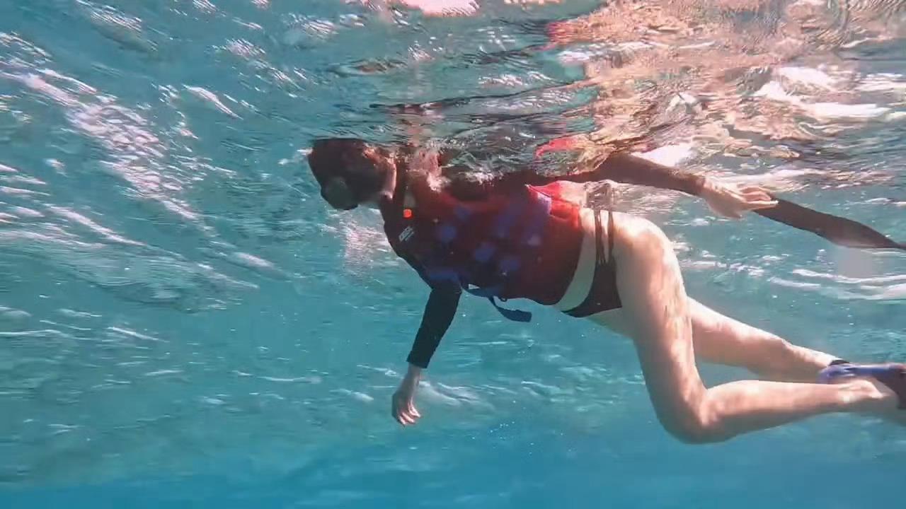 关晓彤浮潜好长的腿晓彤这腿,这身材,简直是海里的美人鱼啊!太美了[期待]