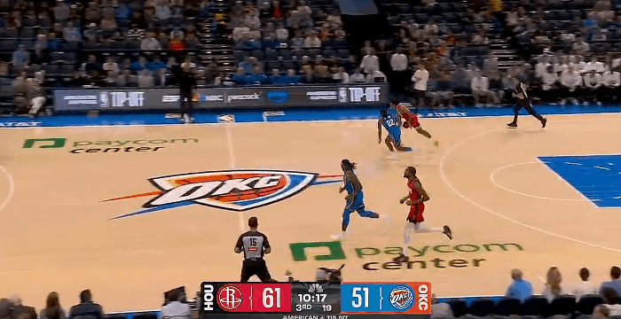 阿门-汤普森后场一条龙强硬攻框打进,火箭下半场6-0开局打停雷霆 NBA常规赛揭幕战,对阵的比赛正在进行中。 第三节比赛中,阿门-汤普森后场一条龙强硬攻框打进,火箭下半场6-0开局打停雷霆。