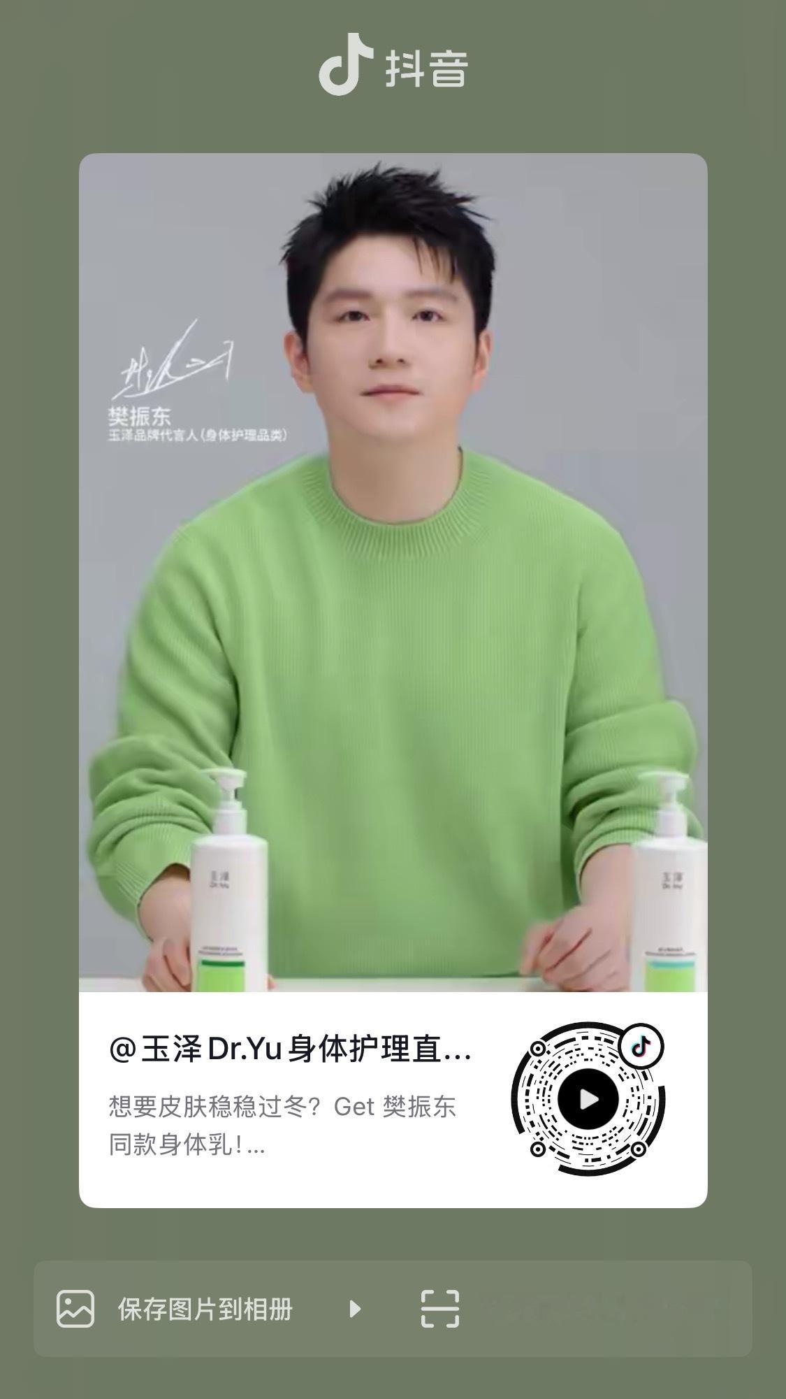 樊振东太潮了 刚刚,【玉泽Dr.Yu官方旗舰店】和【玉泽Dr.Yu身体护理直播间】更新了代言人口播物料,速来团建[爱慕]首位玉泽品牌身体护理代言人樊振东
