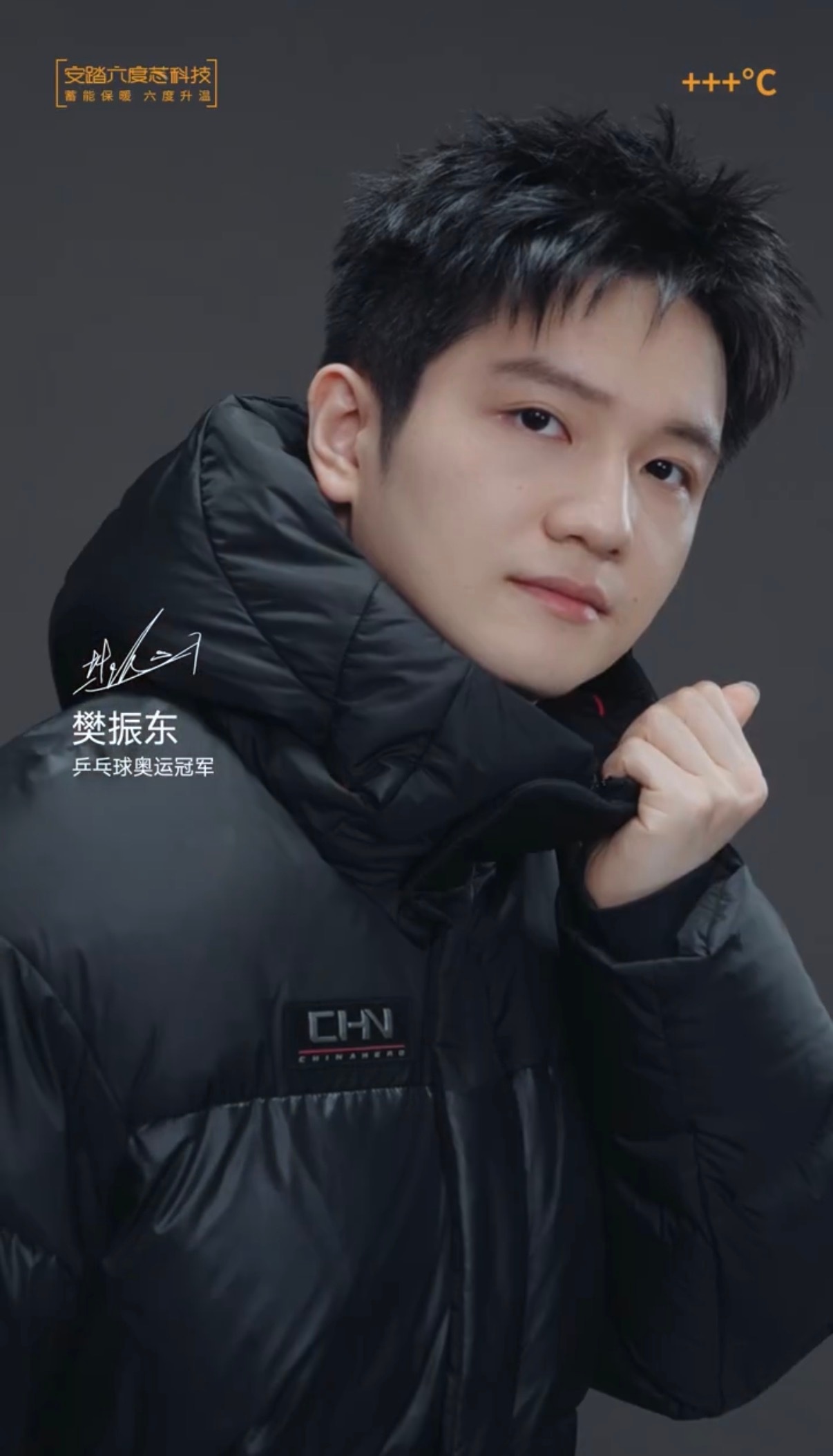 樊振东怼脸拍帅的很轻易 🏓樊振东安踏品牌代言人 撩人纯黑LOOK,天冷了喊你穿羽绒服🧣