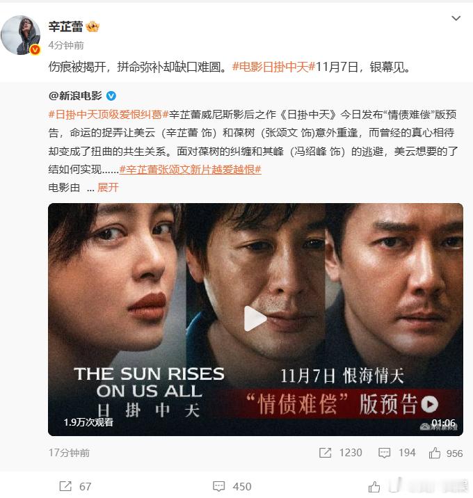 辛芷蕾说11月7日银幕见辛芷蕾说日掛中天11月7日银幕见文艺片也能狂飙!辛芷蕾
