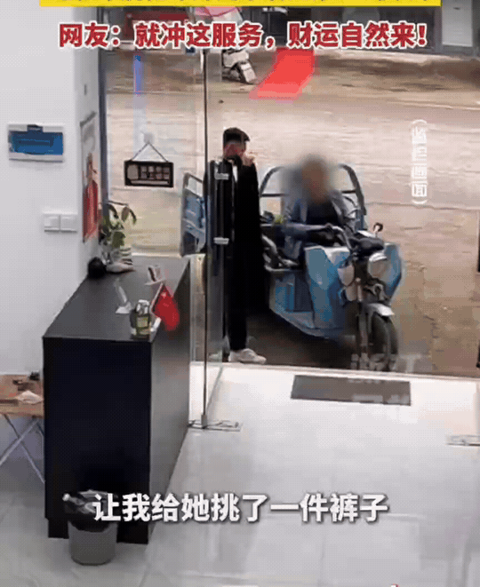 “活该他发财!”安徽阜阳,腿脚不便的老奶奶去买衣服。她想着让老板把衣服拿到门口。没想到老板竟然这样做。 老奶奶腿脚不灵活,她骑着电动三轮车去买衣服。到了服装店门口,她告诉老板自己下车不方便,让老板把衣服拿到门口给她看看。 开始老板给她拿了裤子,老奶奶说还想买件上衣。老板刘先生一看,上衣这么多,怎么也得让奶奶挑一挑。看着自己家店门比较宽,他就上了三轮车,直接把车开进了店里。 然后他搀扶老奶奶下了车,让奶奶坐在椅子上。他把外套展示给奶奶看,让她自己挑选。奶奶一边的胳膊也不太灵活,奶奶看到满意的,老板就耐心的帮奶奶试穿。 最后奶奶爽快的买了一件外套。老板对老年人这样热心,还是挺让人感动的。他没有嫌弃老人行动不便,也没有嫌麻烦。热心并且耐心地对待老奶奶。 网友说,他不发财都难。真诚待人的人,一定有好报。祝愿老板生意兴隆!
