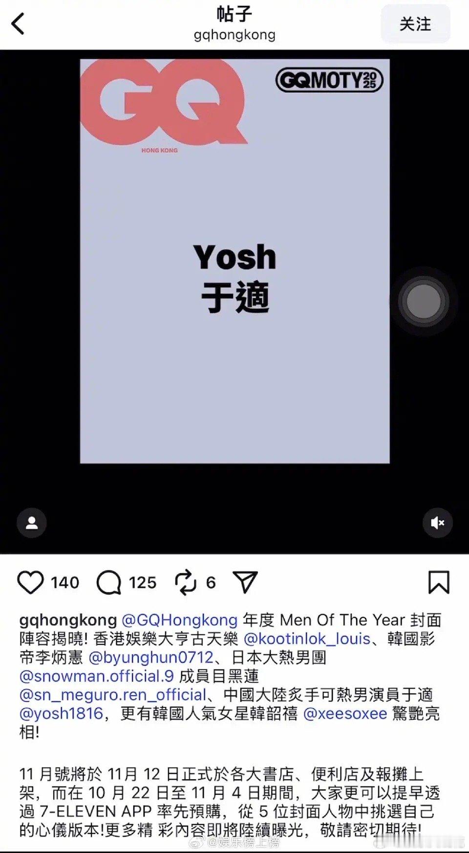 GQ HK年度人物给了于适!到底是电影咖,本身实力也强啊[酷] ​​​