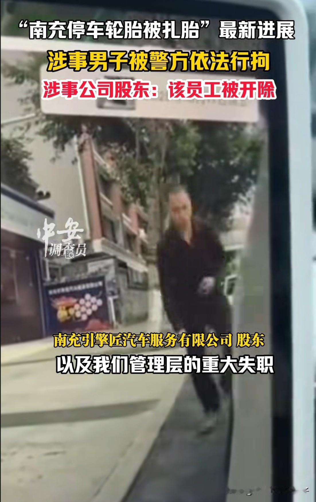 四川南充,修车店门口停车被扎胎最新后续来了,汽修店老板说这是员工的个人行为,已将
