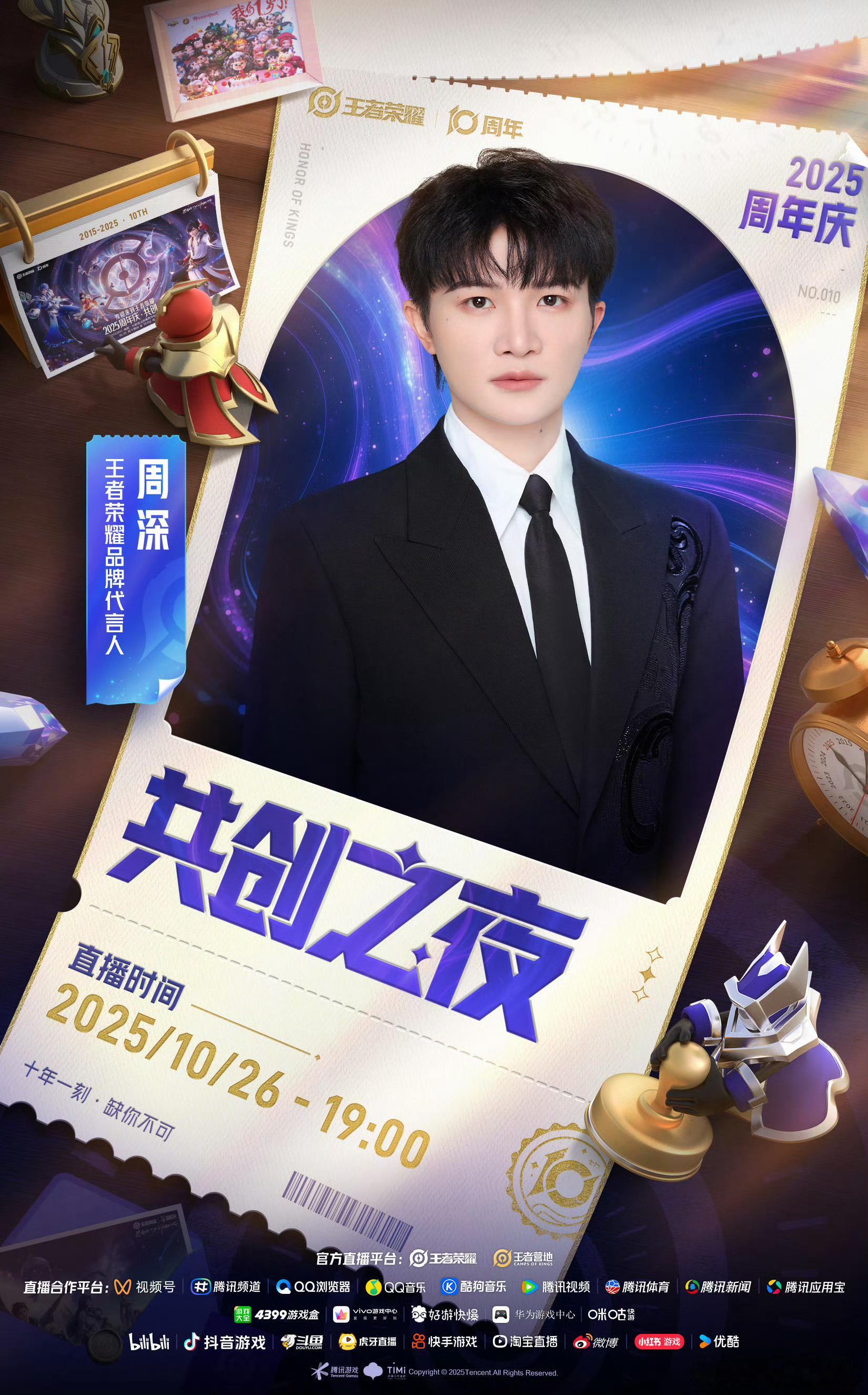 周深官宣共创之夜周深官宣2025共创之夜 听说今年又有新节目?10月26日王者荣耀共创之夜,和王者荣耀品牌代言人周深一起去看看吧!
