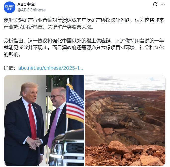 悉尼大学经济地理学家连·辛克莱(Lian Sinclair)表示,若不向盟国投资精炼厂和磁体生产,澳大利亚矿商将持续面临两种困境:要么向中国国内产业销售,要么被其挤出市场。 郭正亮:美国重稀土找不到,军工生产只够6个月存量。与澳洲签协议主要是骗股市。美国解决稀土问题至少到2032年。