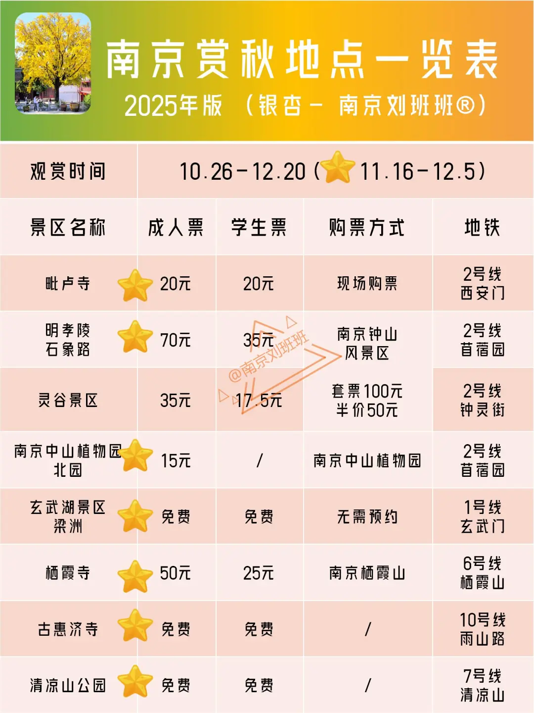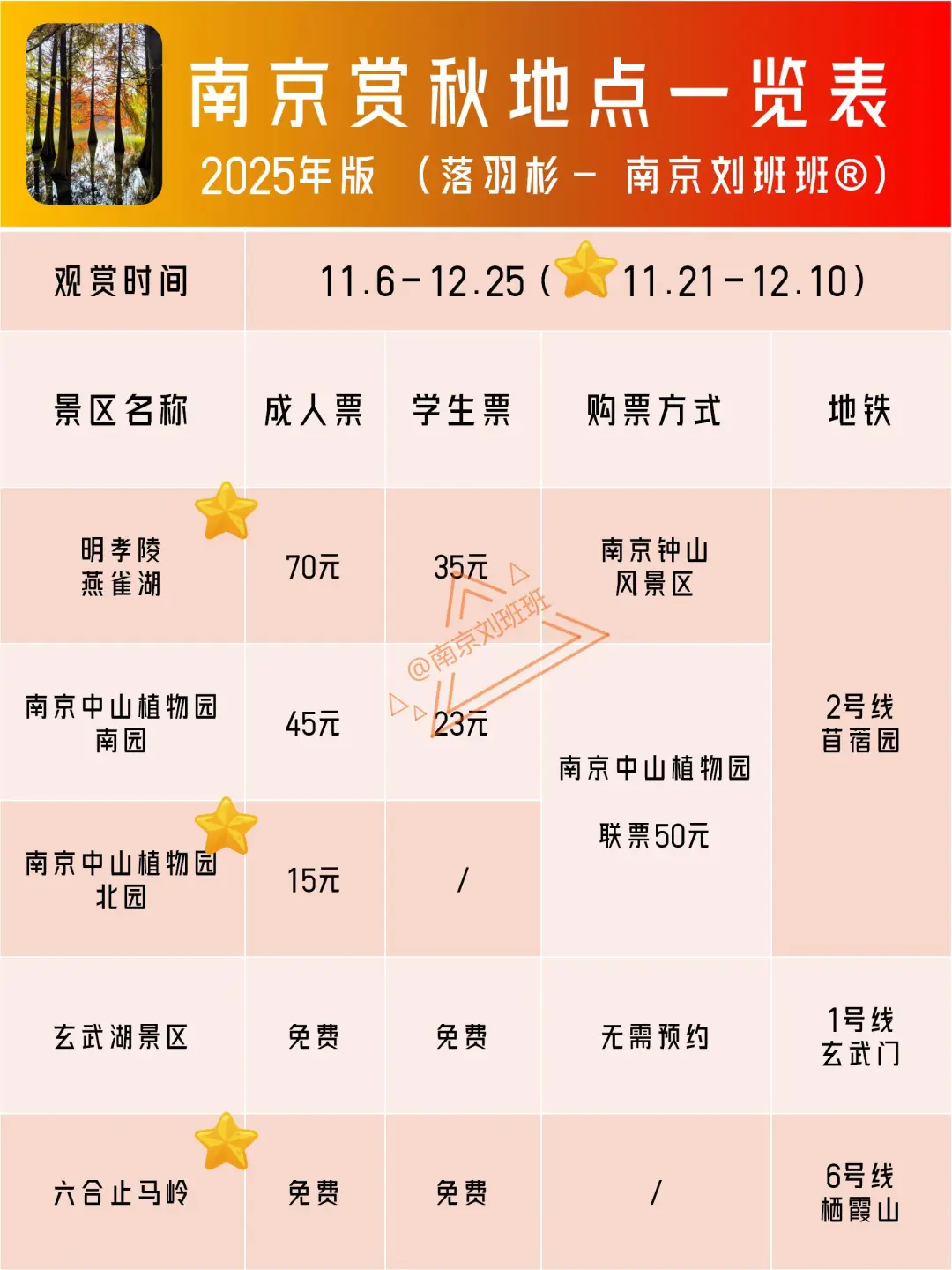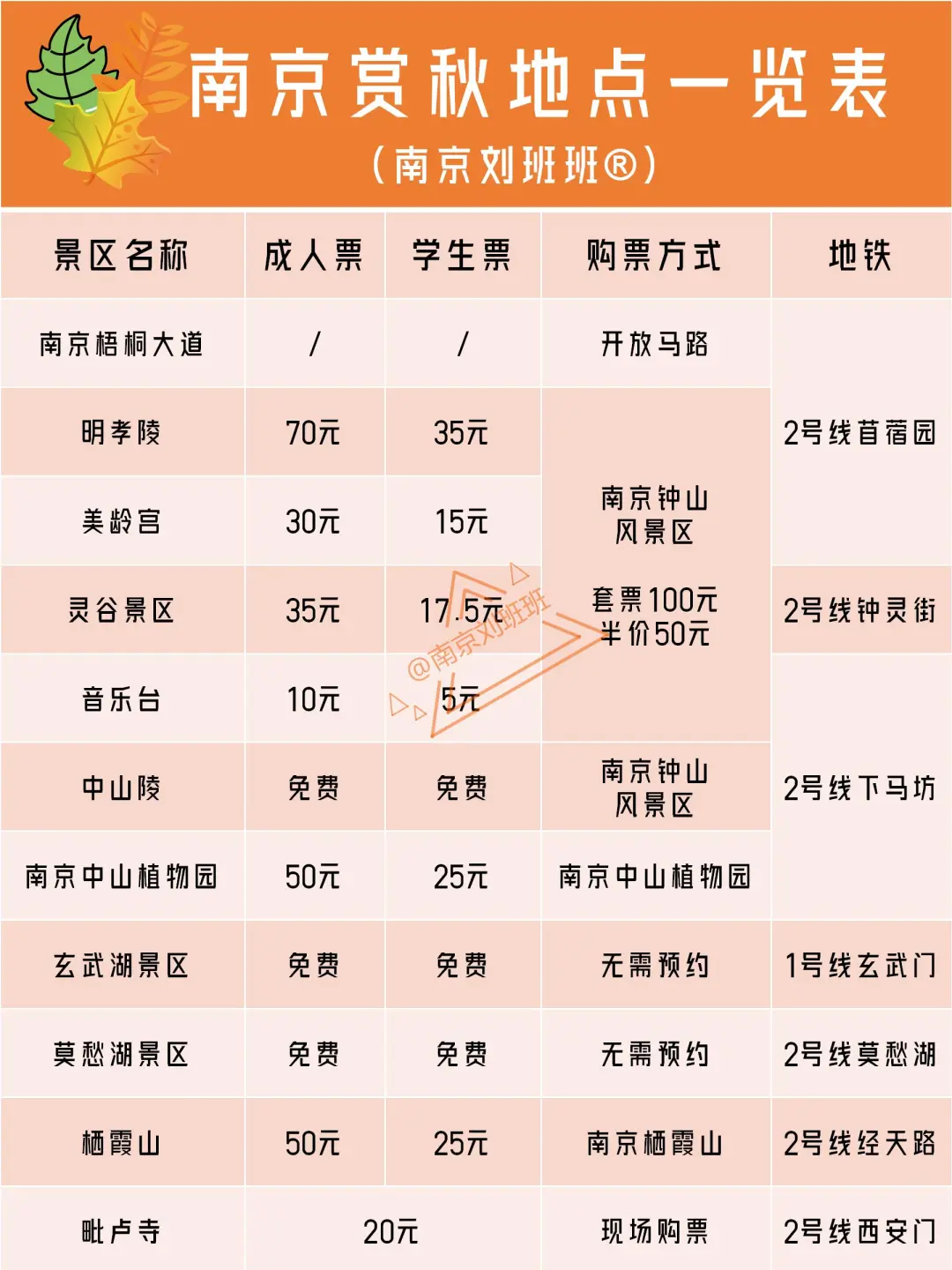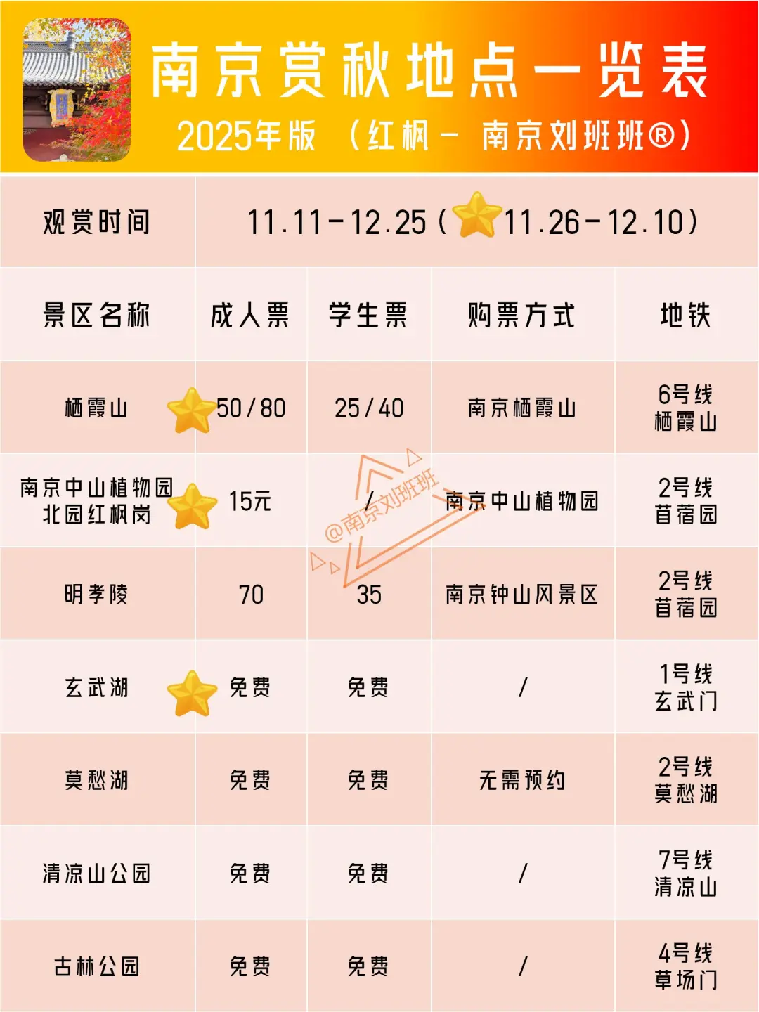 🎫收费:栖霞山🔥、中山植物园北园(红枫岗)🔥、明孝陵、牛首山……