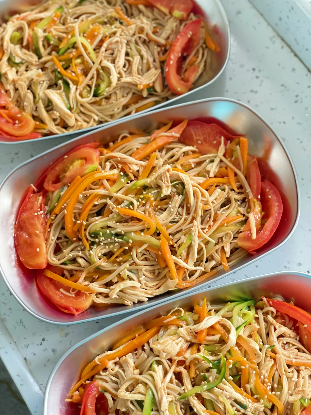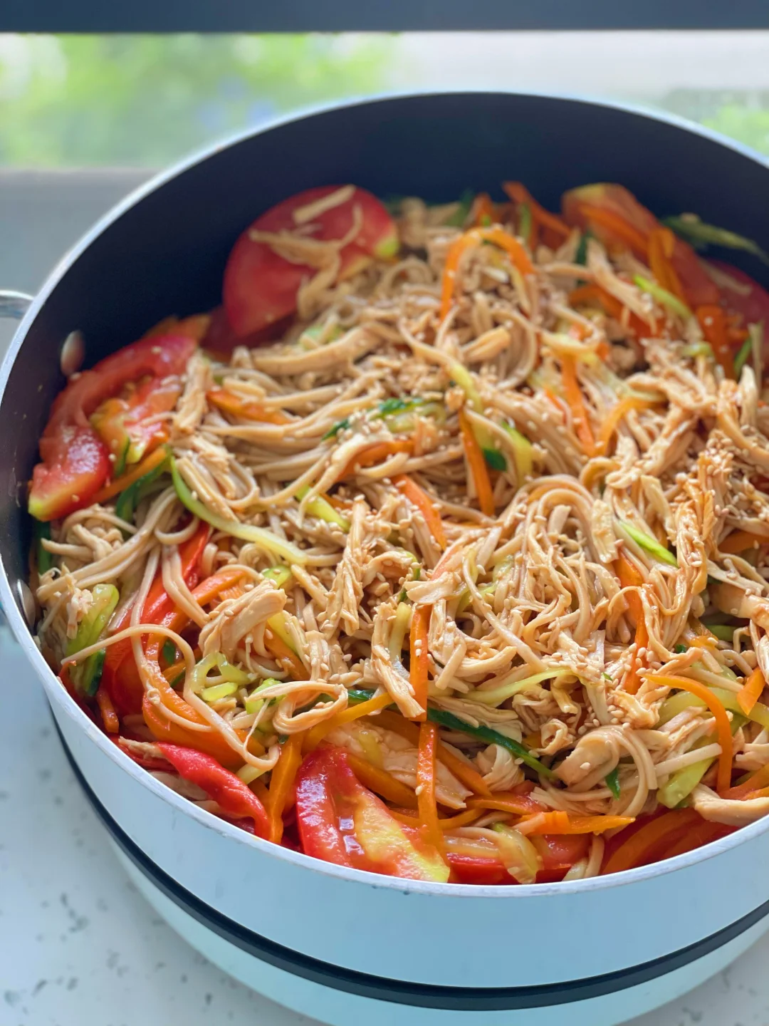 5️⃣最后下入鸡丝,撒上白芝麻拌匀就可以开动啦