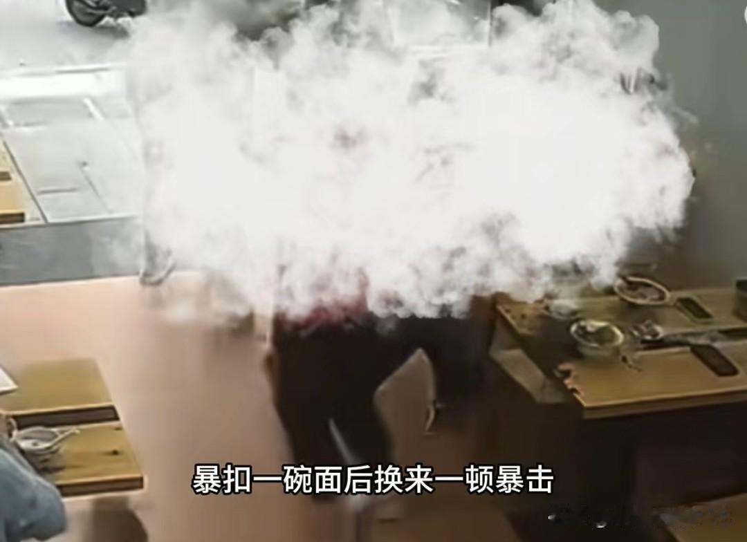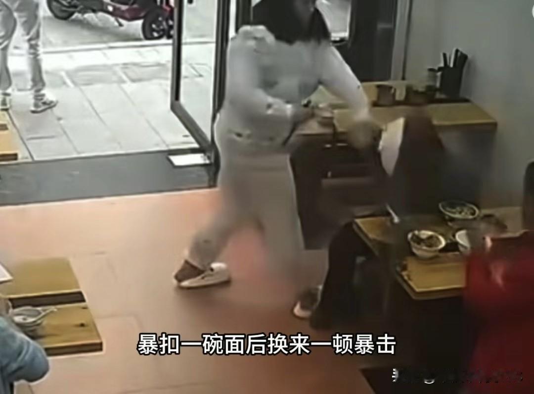 杭州一家面馆里,一位大姐占座几乎横跨两个位置,后面小伙坐下后有点挤,就礼貌提醒她挪一挪。结果这大姐瞬间炸了,直接抄起滚烫的面碗,“哐”一下扣小伙头上了! 小伙他爸就坐在对面,看到儿子被泼,立马起身和儿子一起制止这大姐。混乱中大姐东西撒了一地,她赶紧跑了,结果一分钟后又淡定回来捡东西。 好在群众赶紧报警,警察很快就到了,两分钟就控制住局面。网友调侃:“自己那么大的吨位,心里没有一点数,叫挪一下就破防了。
