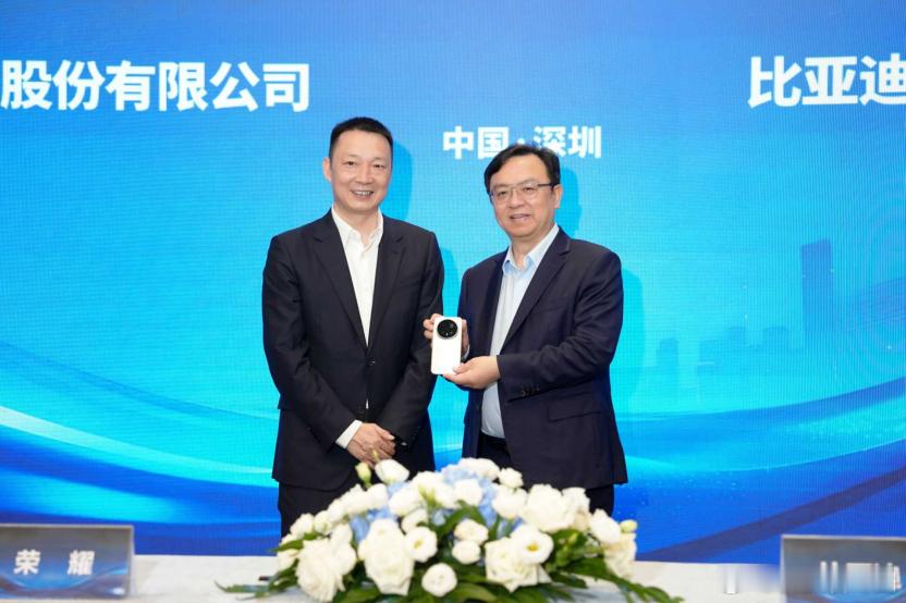 10月21日,荣耀与比亚迪在深圳签署战略合作协议。双方将依托荣耀车联解决方案与比亚迪 DiLink的全新一代智慧生态,以“人”为核心,基于用户智慧出行场景的需求,带来更智能、更个性化的出行体验。荣耀牵手比亚迪达成战略合作